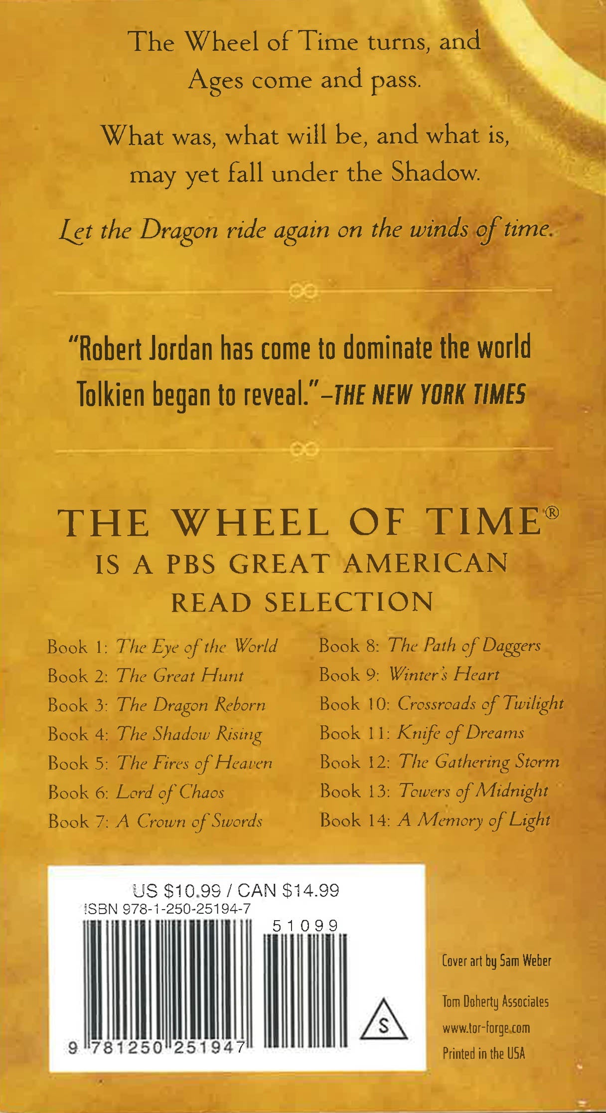 Since its debut in 1990, The Wheel of Time(R) by Robert Jordan has captivated millions of readers around the globe with its scope, originality, and compelling characters. The last six books in series were all instant #1 New York Times bestsellers, and The Eye of the World was named one of America's best-loved novels by PBS's The Great American Read.