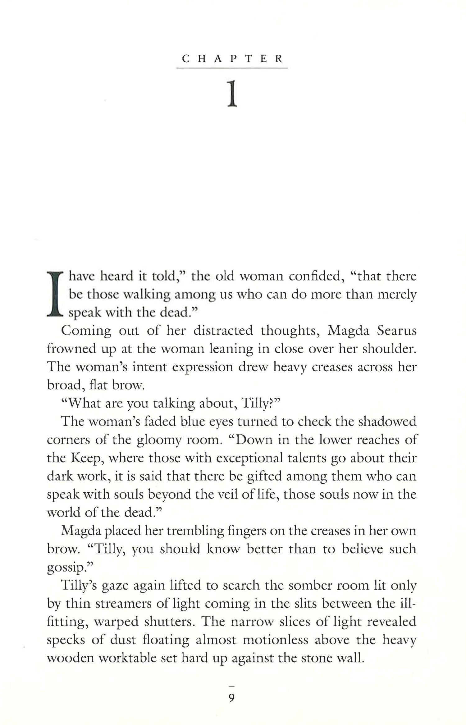 In a time before legends had yet been born . . .Married to the powerful leader of her people, safe among those gifted with great ability, Magda Searus is protected from a distant world descending into war. But when her husband, a man who loved life and loved her, unexpectedly commits suicide, she suddenly finds herself alone. Because she is ungifted herself, without her husband she no longer has standing among her people, and she finds herself isolated in a society that seems to be crumbling around her.Despite her grief, she is driven to find the reasons behind why her husband would do such a thing--why he would abandon her and her people at such a profoundly dangerous time. Though she is not gifted, she begins to discover that there may be more to her husband's suicide than anyone knew. What she finds next, no one is willing to believe.Without anyone to help her, she knows that she must embark on a mission to find a mysterious spiritist, if she even exists, so that she may speak with the dead. This quest may also be her last chance to unravel what is really behind the mysterious events befalling her people. What she discovers along the way is that the war is going far worse than she had known, and that the consequences of defeat will be more terrifying for her and her people than she could have imagined.As mortal peril begin to close in around her, Magda learns that she is somehow the key to her people's salvation.Journey with Magda Searus into her dark world, and learn how true legends are born.