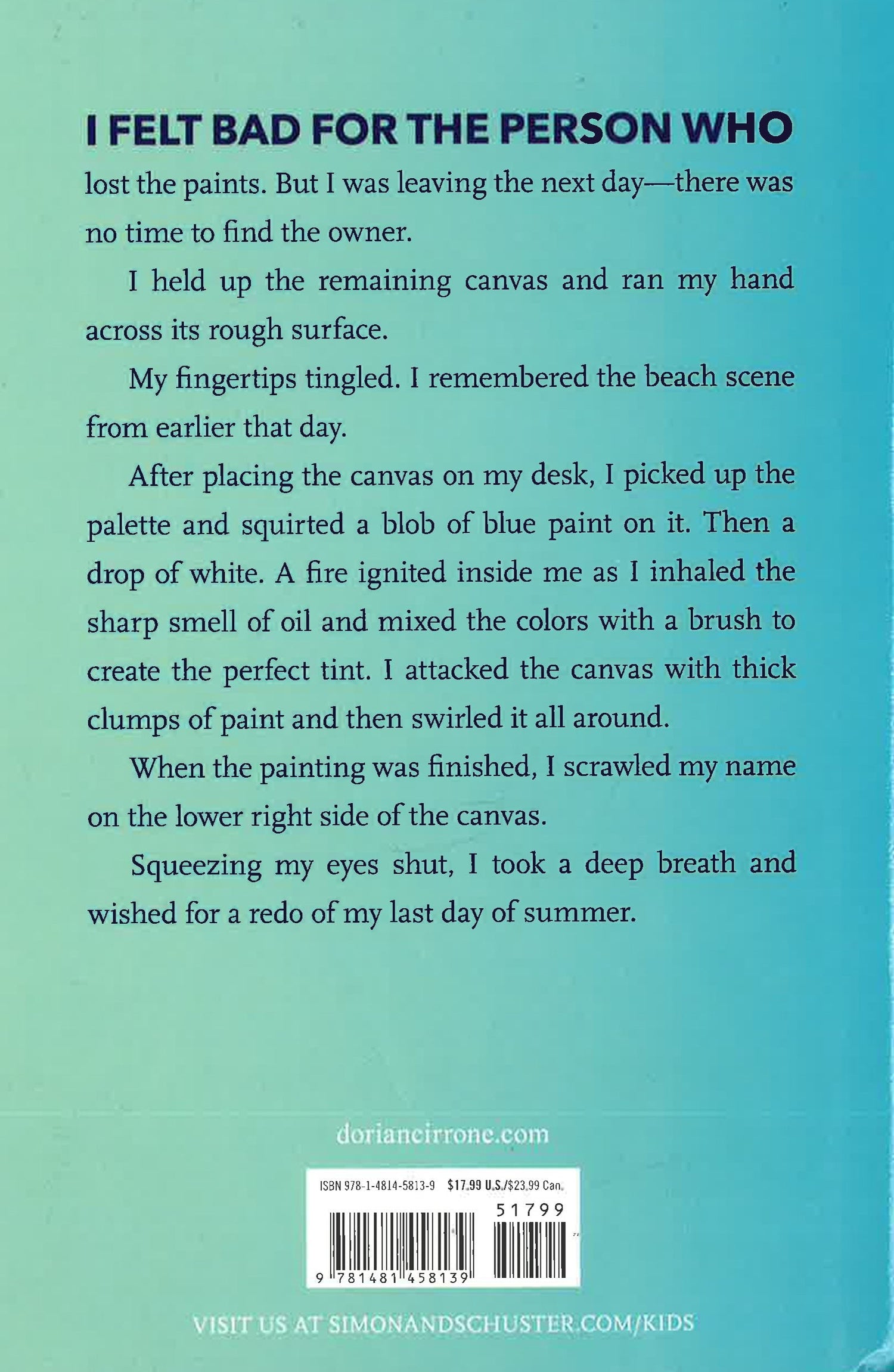 The magic of summer comes to life in this enchanting middle grade debut about an eleven-year-old girl who must save the future by restarting time after she realizes that her wish to relive the last day of summer may not have been such a great thing after all. What if you could get a do-over--a chance to relive a day in your life over and over again until you got it right? Would you? After finding a mysterious set of paints in her backpack, eleven-year-old Haleigh Adams paints a picture of her last day at the New Jersey shore. When she wakes up the next morning, Haleigh finds that her wish for an endless summer with her new friend Kevin has come true. At first, she's thrilled, but Haliegh soon learns that staying in one place--and time--comes with a price. And when Haleigh realizes her parents have been keeping a secret, she is faced with a choice: do nothing and miss out on the good things that come with growing up or find the secret of the time loop she's trapped in and face the inevitable realities of moving on. As she and Kevin set out to find the source of the magic paints, Haleigh worries it might be too late. Will she be able to restart time? Or will it be the biggest mistake of her life? *This book may have remainder mark*