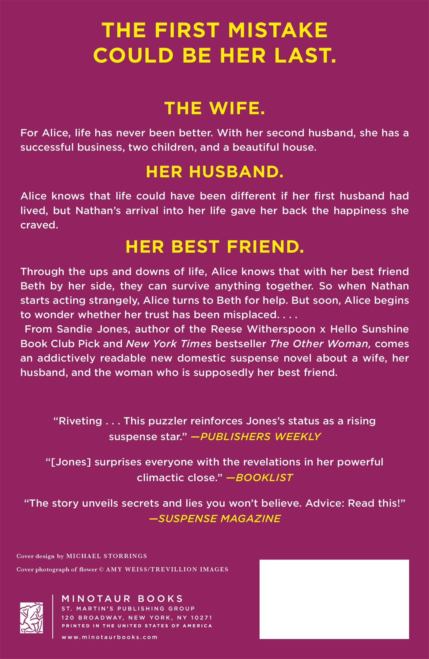 HER BEST FRIEND: Through the ups and downs of life, from celebratory nights out to comforting each other through loss, Alice knows that with her best friend Beth by her side, they can survive anything together. So when Nathan starts acting strangely, Alice turns to Beth for help. But soon, Alice begins to wonder whether her trust has been misplaced . . .