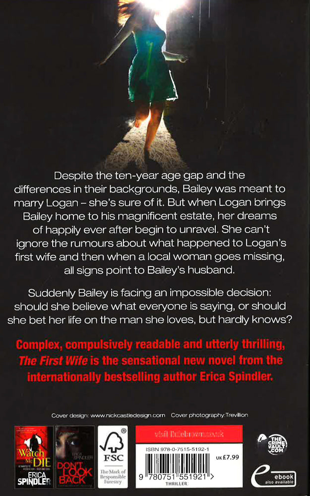 Utterly gripping and compulsively readable, the new thriller from internationally bestselling author Erica Spindler.'Pulse-pounding, page-turning, absolutely can't put it down.' Lisa Gardner THE OUTSTANDING THRILLER FROM NEW YORK TIMES BESTSELLER ERICA SPINDLER What have readers been saying about The First Wife? 'This is a must read. Truly outstanding as always.' Amazon reviewer, 5***** 'A real page turner that kept me guessing throughout.' Amazon reviewer, 5*****'Spindler fans should relish this latest release, as should anybody looking for a first class thriller!' Amazon reviewer, 5***** Perfect for fans of Karin Slaughter and Karen Rose, Erica Spindler is master of classic crime fiction and the twist you won't see coming. Despite the ten-year age gap and the differences in their backgrounds, Bailey was meant to be with Logan - she's sure of it. It's natural that they should marry as soon as they can. But when Logan brings Bailey home to his magnificent estate on ninety wooded acres, her dreams of happily-ever-after begin to unravel. She can't ignore the rumours about what happened to Logan's first wife and then when a local woman goes missing, all signs point to her husband. Has Bailey made a terrible mistake trusting Logan? What happened to his first wife? Suddenly Bailey is facing an impossible decision: should she believe what everyone is saying, or should she bet her life on the man she loves, but hardly knows?Praise for Erica Spindler: 'Pulse-pounding, page-turning, absolutely can't put it down.' Lisa Gardner 'Neat, taut and written with panache that forces you to turn each page.' Daily Mail 'I can put Spindler on my growing list of favourite crime-fiction authors.' Evening Standard 'Has enough twists to keep you riveted right to the final page.' Image