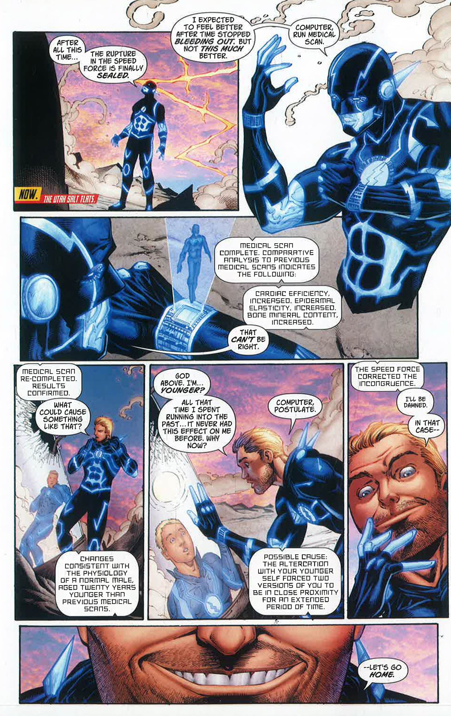 Traveling from 20 years hence, a future version of Barry Allen has managed to seal a rupture in the Speed Force, the very preternatural force from which his powers flow. But though time and space are safe once again, there are unforeseen consequences to his actions. While Future Flash remains in the present day, his bewildered counterpart is pulled through the rift, becoming trapped in the Speed Force itself!