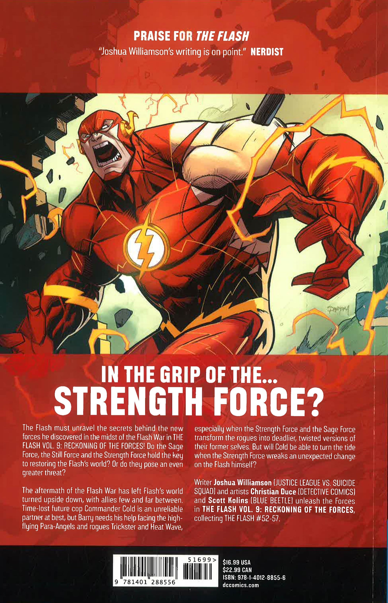 Writer Joshua Williamson (Justice League vs. Suicide Squad) and artists Christian Duce (Detective Comics) and Scott Kolins (Blue Beetle) unleash the Forces in The Flash Vol. 9: Reckoning of the Forces, collecting The Flash (2016) issues #52-57.