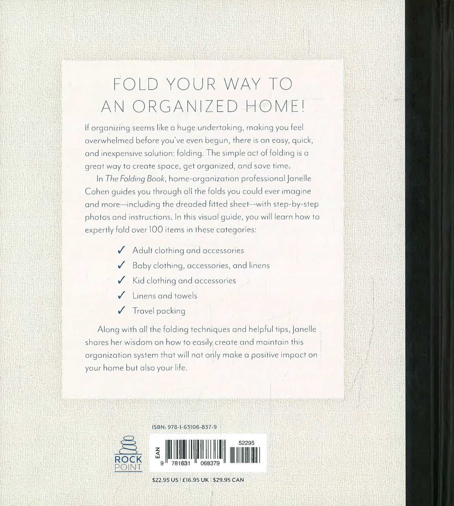In The Folding Book, Janelle guides you through all the folds you could ever imagine and more—including the dreaded fitted sheet—with step-by-step photos and instructions and her helpful tips and tricks.
