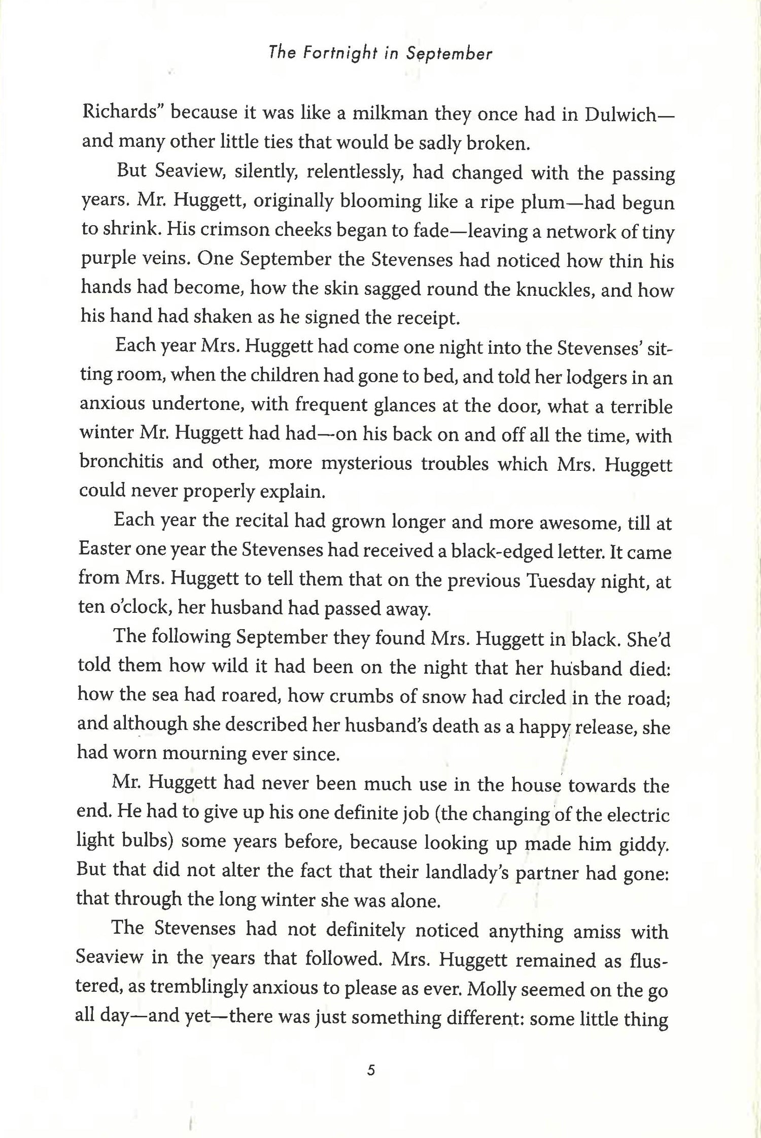 Meet the Stevens family, as they prepare to embark on their yearly holiday to the coast of England. Mr. and Mrs. Stevens first made the trip to Bognor Regis on their honeymoon, and the tradition has continued ever since. They stay in the same guest house and follow the same carefully honed schedule—now accompanied by their three children, twenty-year-old Mary, seventeen-year-old Dick, and little brother Ernie.