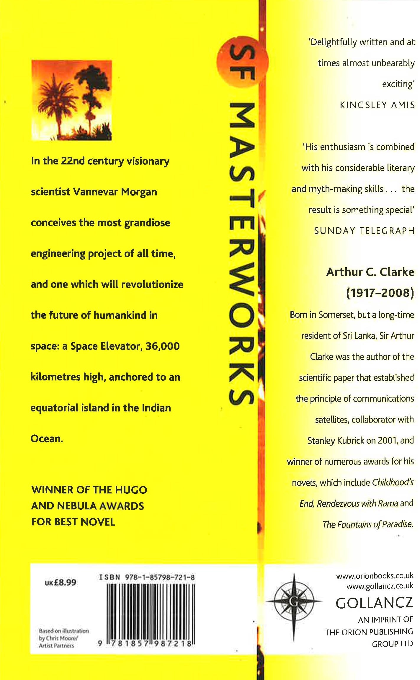 One of Clarke's most famous and acclaimed novels, winner of both the HUGO AWARD and the NEBULA AWARD In the 22nd century visionary scientist Vannevar Morgan conceives the most grandiose engineering project of all time, and one which will revolutionize the future of humankind of space: a Space Elevator, 36,000 kilometres high, anchored to an equatorial island in the Indian Ocean.