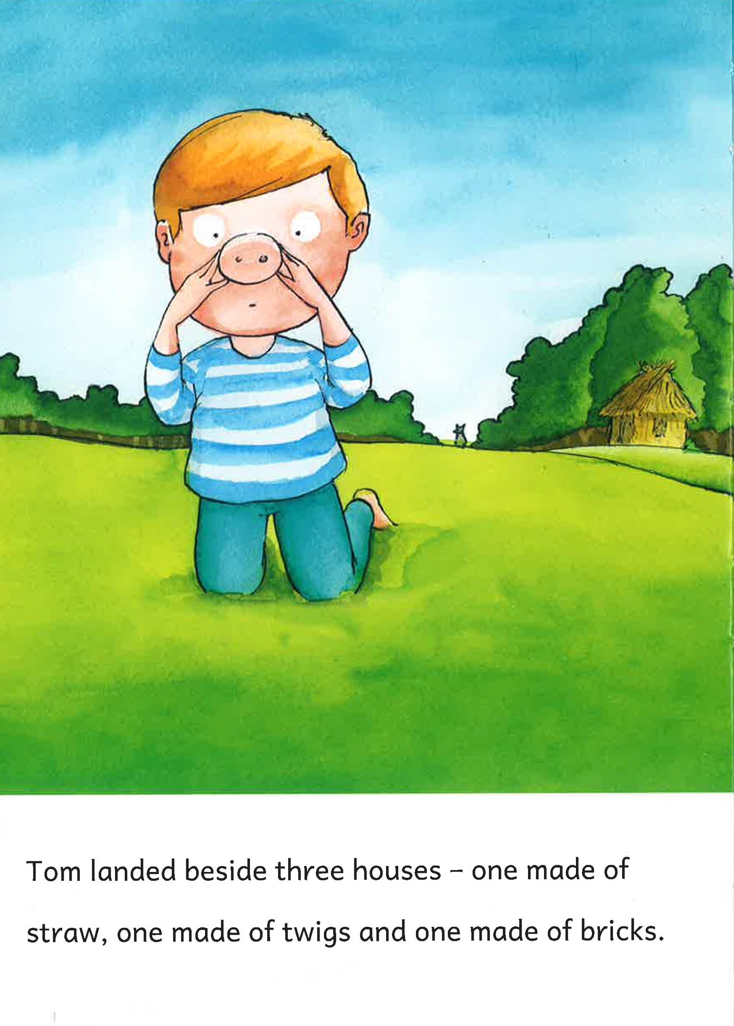 She sends him into the story with a magic spell and Tom must help the three little pigs to outsmart the big bad wolf!