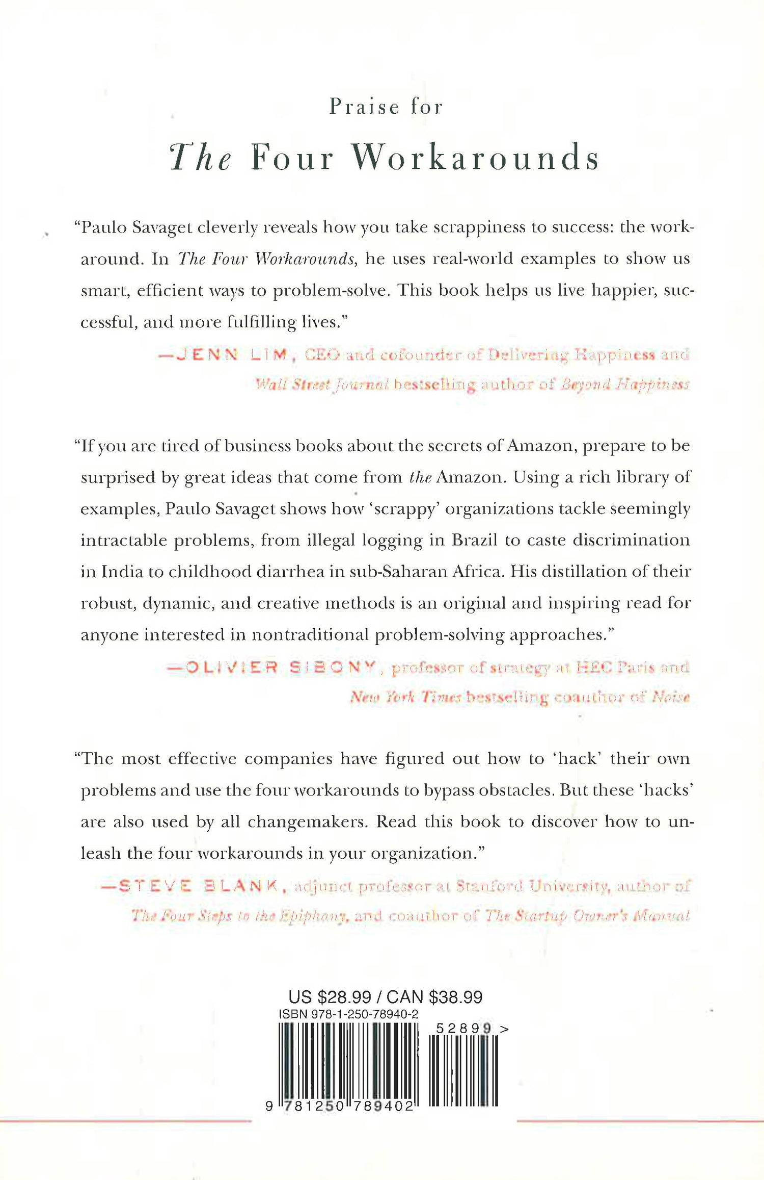 The Four Workarounds shows how seemingly intractable problems--from public urination to the challenges of delivering lifesaving medicine to remote communities--were addressed using unconventional tactics. Some of the world's biggest and most admired companies are already using Savaget's research to transform the ways they do business. And these same lessons can also revolutionize the ways we approach the challenges we all encounter every day of our lives.