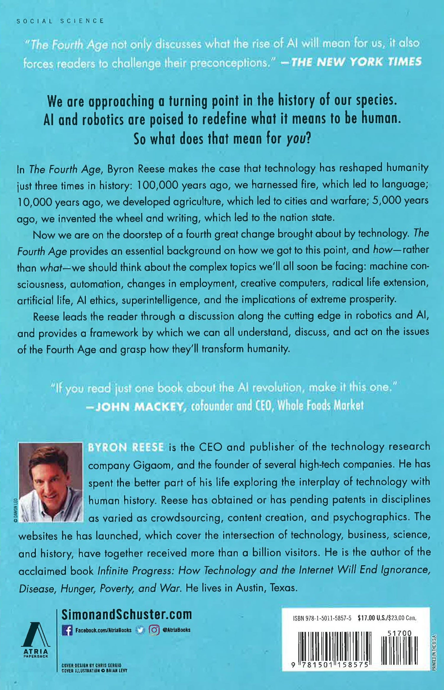 As we approach a great turning point in history when technology is poised to redefine what it means to be human, The Fourth Age offers fascinating insight into AI, robotics, and their extraordinary implications for our species. "If you only read just one book about the AI revolution, make it this one" (John Mackey, cofounder and CEO, Whole Foods Market).