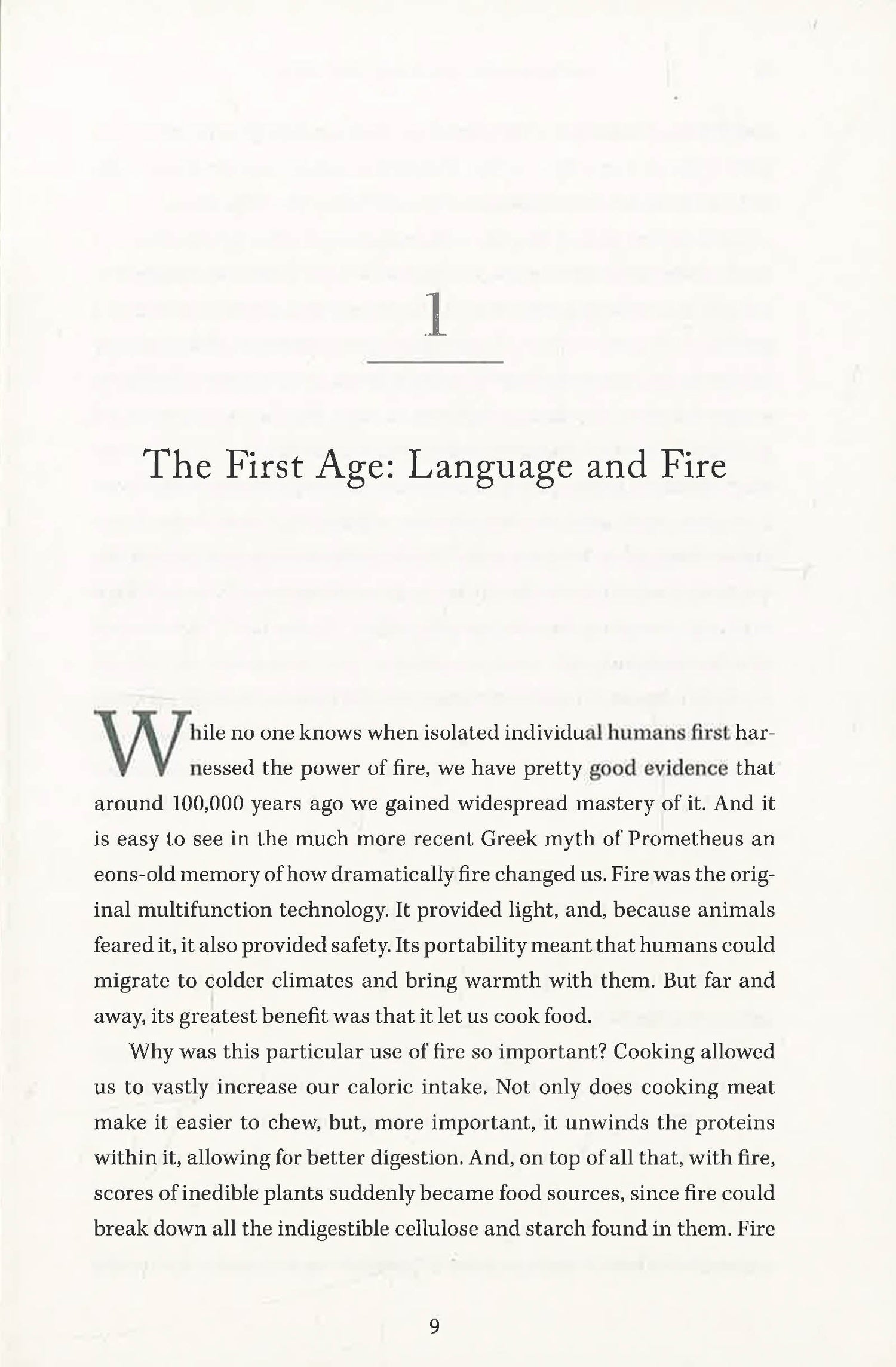 In The Fourth Age, Byron Reese makes the case that technology has reshaped humanity just three times in history: 100,000 years ago, we harnessed fire, which led to language; 10,000 years ago, we developed agriculture, which led to cities and warfare; 5,000 years ago, we invented the wheel and writing, which lead to the nation state.