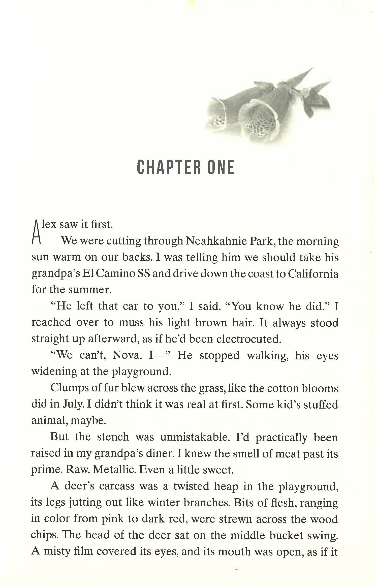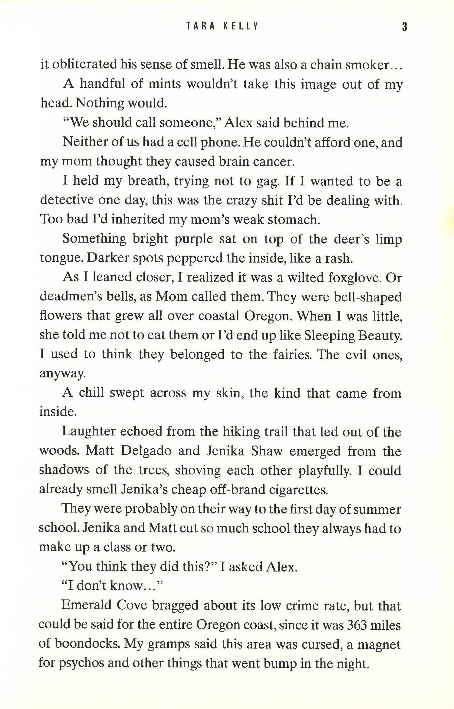 Gramps always said that when the crickets were quiet, something bad was coming. And the crickets have been as silent as the dead. It started with the murdered deer in the playground, a purple foxglove in its mouth. But in the dying boondock town of Emerald Cove, life goes on.I work at Gramps's diner, and the cakes - the entitled rich kids who vacation here - make our lives hell. My best friend, Alex Pace, is the one person who gets me, and I'm starting to have more-than-friend feelings for him - feelings I don't want to have. But he's changing. He's almost like a stranger now, keeping secrets and picking fights with the cakes.Then one of the cakes disappears.When she turns up murdered, a foxglove in her mouth, a rumor goes around that Alex was the last person seen with her-and everyone but me believes it. Well, everyone except my worst enemy, Jenika Shaw. When Alex goes missing, it's up to us to prove his innocence and uncover the true killer. But the truth will shatter everything I've ever known about myself - and Alex.