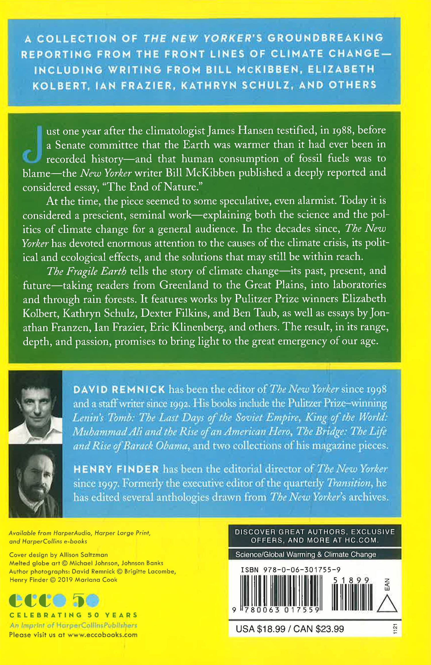 The Fragile Earth tells the story of climate change—its past, present, and future—taking readers from Greenland to the Great Plains, and into both laboratories and rain forests. It features some of the best writing on global warming from the last three decades, including Bill McKibben’s seminal essay “The End of Nature,” the first piece to popularize both the science and politics of climate change for a general audience, and the Pulitzer Prize–winning work of Elizabeth Kolbert, as well as Kathryn Schulz, Dexter Filkins, Jonathan Franzen, Ian Frazier, Eric Klinenberg, and others. The result, in its range, depth, and passion, promises to bring light, and sometimes heat, to the great emergency of our age.