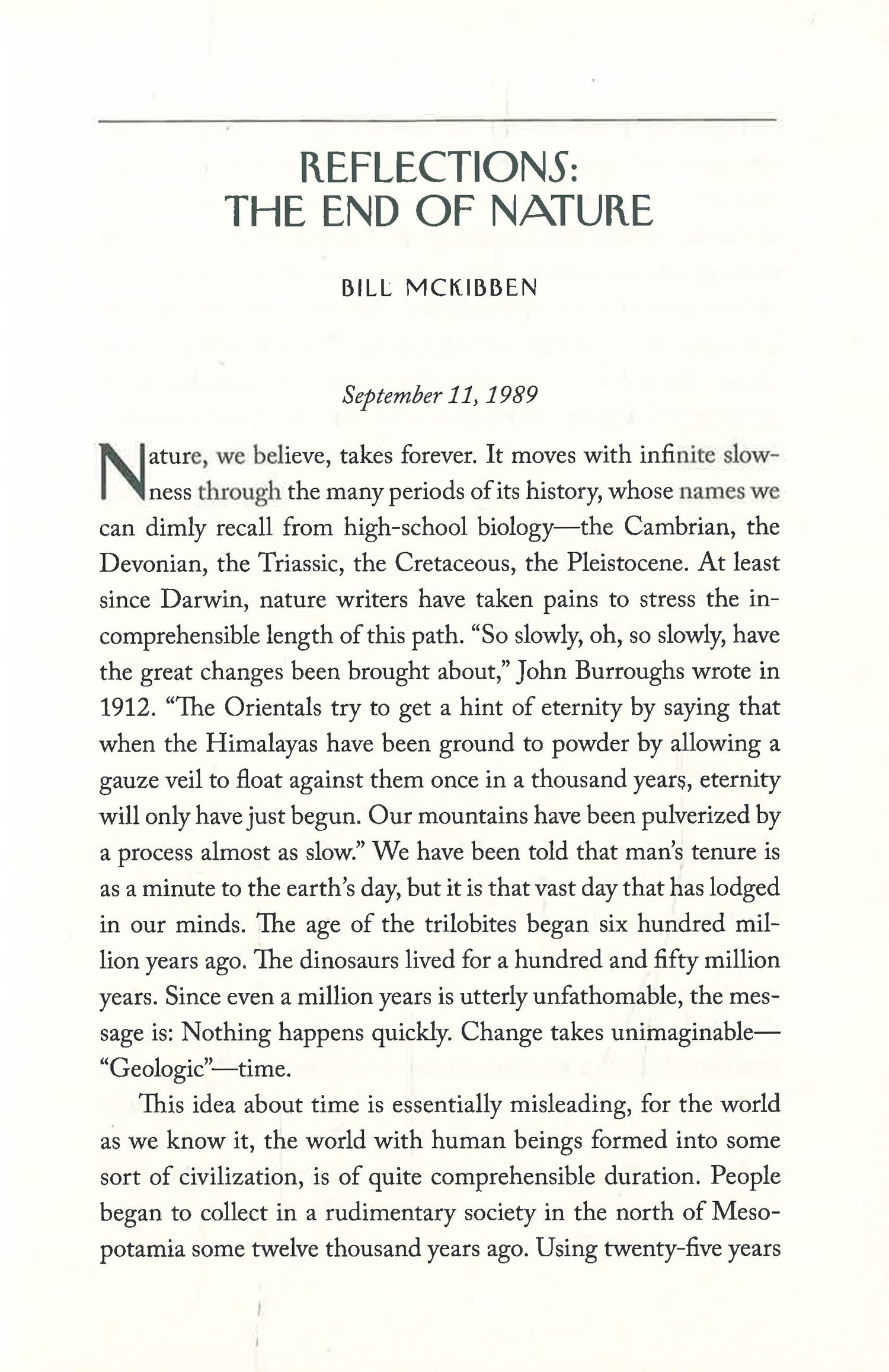 Just one year after climatologist James Hansen first came before a Senate committee and testified that the Earth was now warmer than it had ever been in recorded history, thanks to humankind’s heedless consumption of fossil fuels, New Yorker writer Bill McKibben published a deeply reported and considered piece on climate change and what it could mean for the planet.