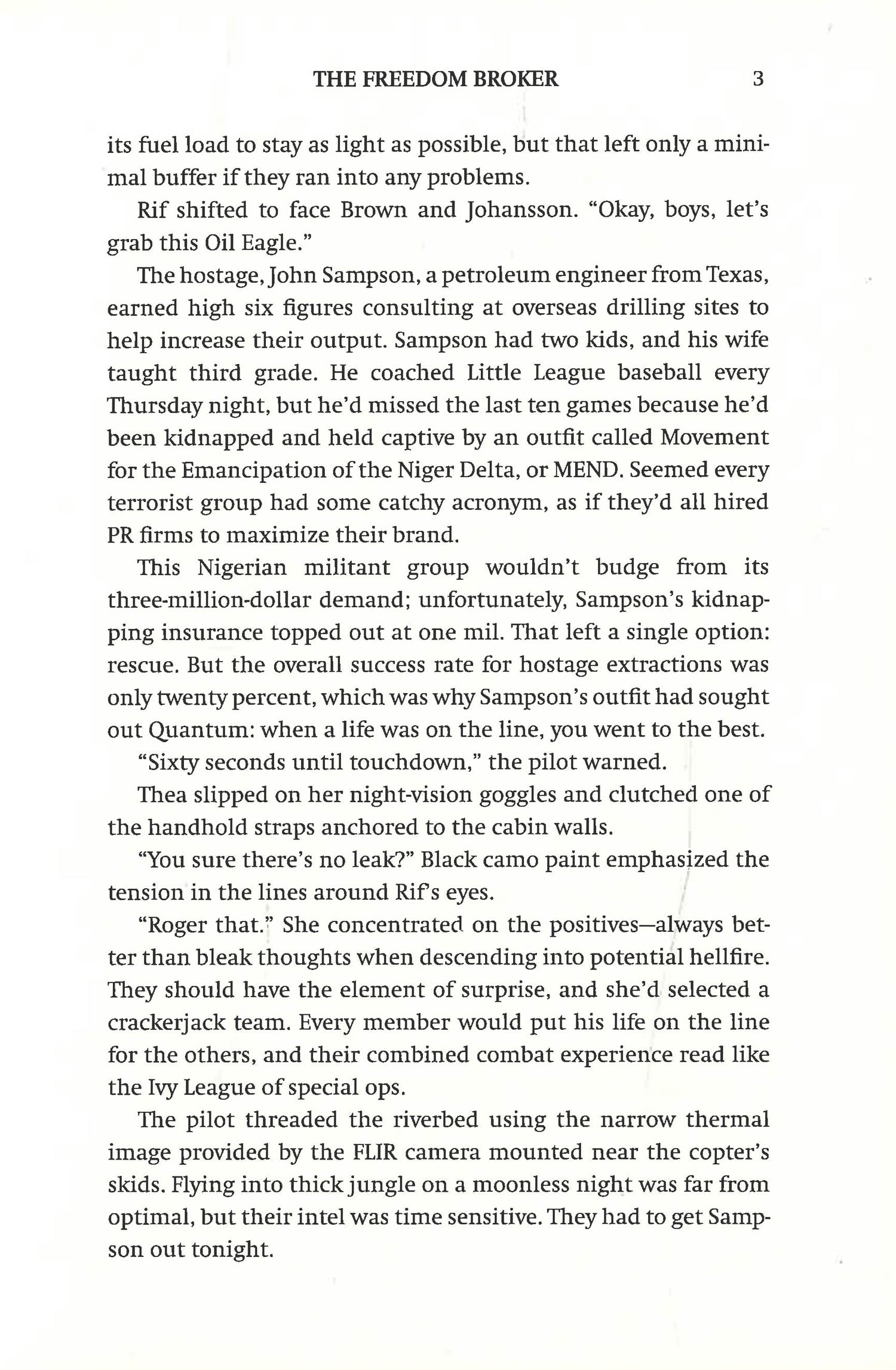 Thea Paris, one of only twenty-five elite kidnap and ransom specialists in the world--and the only one who is a woman--is the best in the business. And she's facing the most urgent and challenging rescue mission of her life: her own father's.As a child, Thea was forced to watch, paralyzed with fear, while her younger brother was abducted in the middle of the night by masked intruders. This life-changing experience drove her to become what she is today: a world-class freedom broker. When Thea's oil magnate father, Christos Paris, is snatched from his yacht off Santorini on his sixtieth birthday, days away from the biggest deal of his career, the brutal kidnappers leave the entire crew slaughtered in their wake. Can Thea rescue her father--and prevent this kidnapping from destroying her family for good?