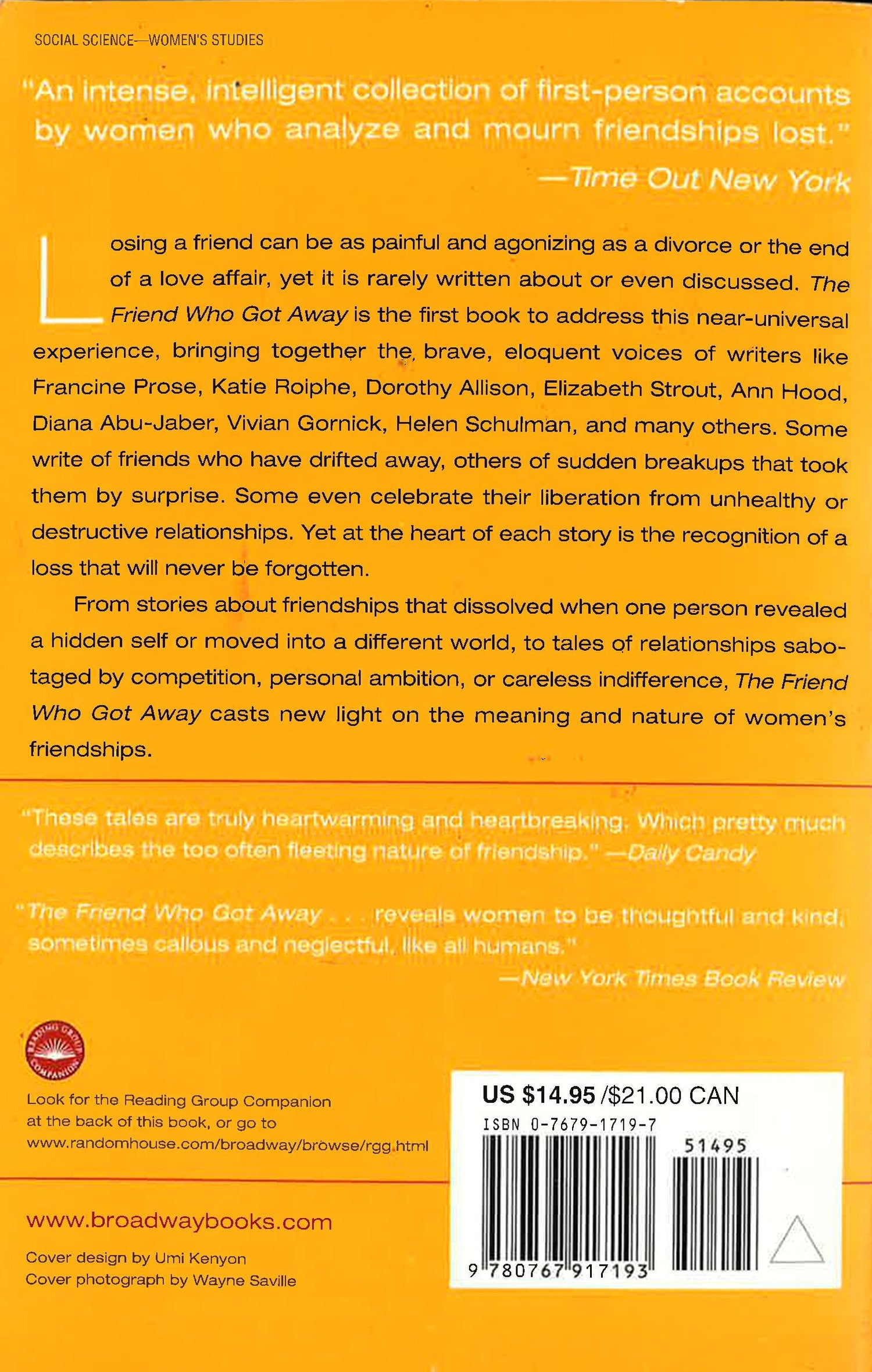 Losing a friend can be as painful and as agonizing as a divorce or the end of a love affair, yet it is rarely written about or even discussed. THE FRIEND WHO GOT AWAY is the first book to address this near-universal experience, bringing together the brave, eloquent voices of writers like Francine Prose, Katie Roiphe, Dorothy Allison, Elizabeth Strout, Ann Hood, Diana Abu Jabar, Vivian Gornick, Helen Schulman, and many others. Some write of friends who have drifted away, others of sudden breakups that took them by surprise. Some even celebrate their liberation from unhealthy or destructive relationships. Yet at the heart of each story is the recognition of a loss that will never be forgotten. From stories about friendships that dissolved when one person revealed a hidden self or moved into a different world, to tales of relationships sabotaged by competition, personal ambition, or careless indifference, THE FRIEND WHO GOT AWAY casts new light on the meaning and nature of women?s friendships. Katie Roiphe writes with regret about the period in her life when even close friends seemed expendable compared to men and sex. Mary Morris reveals how a loan led to the unraveling of a lifelong friendship. Vivian Gornick explores how intellectual differences eroded the bond between once inseparable companions. And two contributors, once best friends, tell both sides of the story that led to their painful breakup. Written especially for this anthology and touched with humor, sadness, and sometimes anger, these extraordinary pieces simultaneously evoke the uniqueness of each situation and illuminate the universal emotions evoked by the loss of a friend. *This book may have remainder mark*