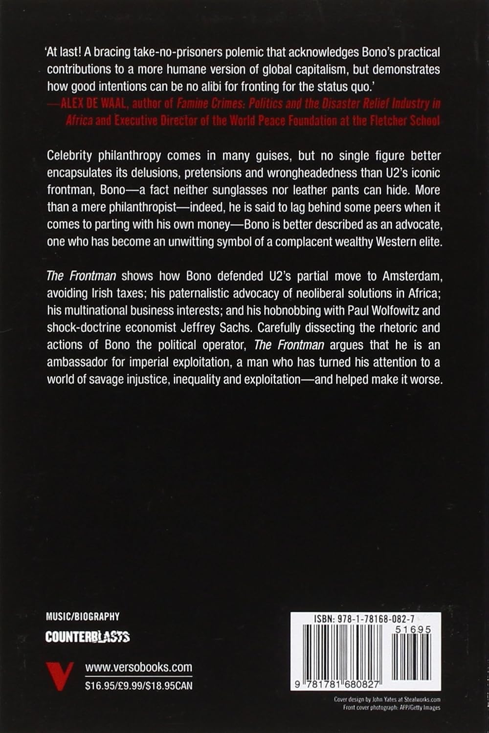 Celebrity philanthropy comes in many guises, but no single figure better encapsulates its delusions, pretensions and wrongheadedness than U2's iconic frontman, Bono - a fact neither sunglasses nor leather pants can hide. More than a mere philanthropist - indeed, he lags behind many of his peers when it comes to parting with his own money - Bono is better described as an advocate, and has become an unwitting symbol of the complacent wealthy Western elite. The Frontman examines Bono's role in Irish investments before the economic collapse; his paternalistic and often bullying advocacy of neoliberal solutions in Africa; his multinational business interests; and his hobnobbing with Paul Wolfowitz and shock-doctrine economist Jeffrey Sachs. Carefully dissecting the rhetoric and actions of Bono the political operator, The Frontman shows him to be an ambassador for imperial exploitation, a man who has turned his attention to a world of savage injustice, inequality and exploitation - and helped make it worse.