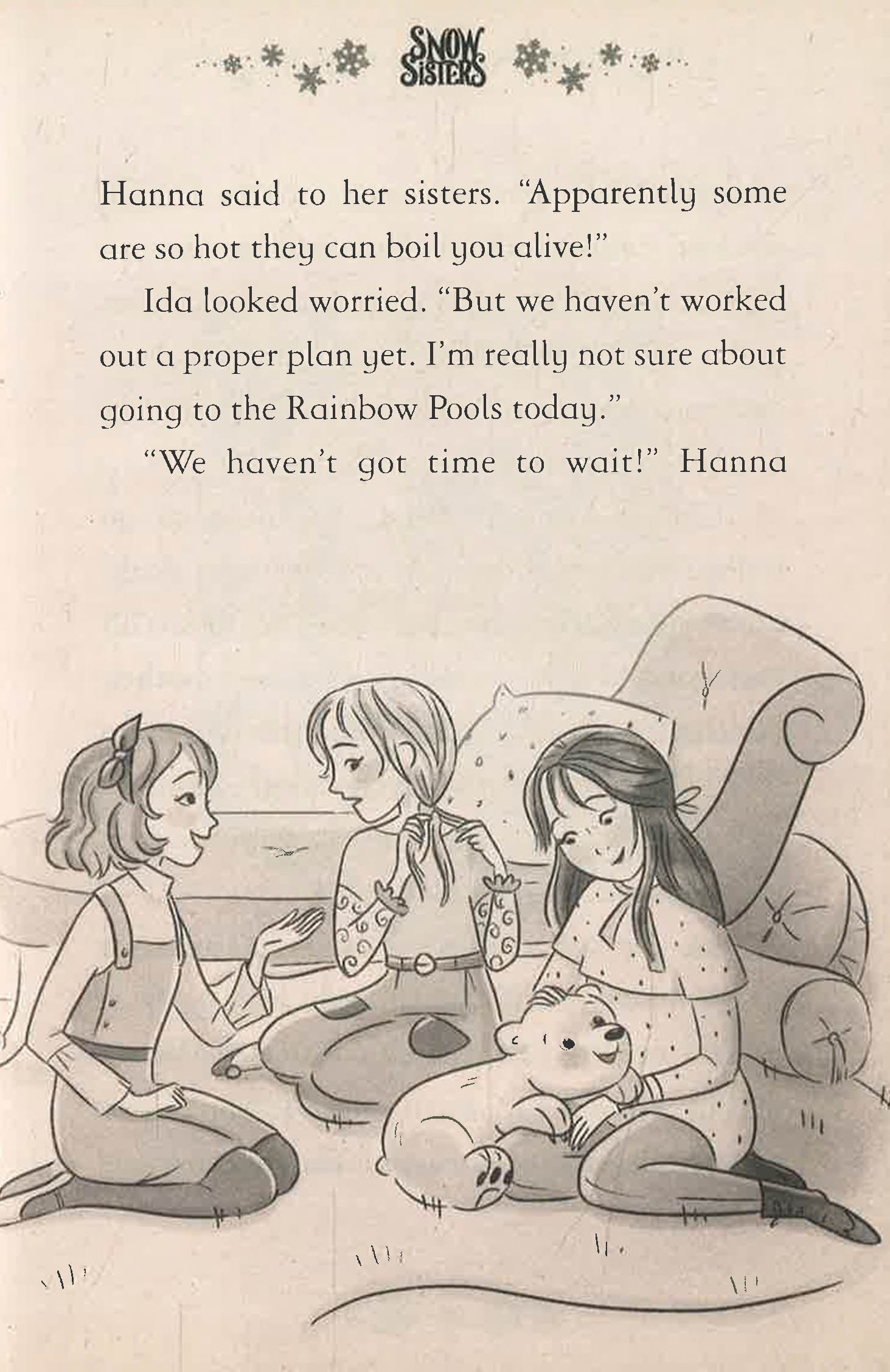 The Snow Sisters' magic is growing stronger, but every day the Shadow Witch grows stronger too. It's a race against time to reach the mysterious Rainbow Pools and the light orb that is hidden there. But the Shadow Witch is one step ahead of them! Faced with steaming geysers, can the girls reach the purple Everchanging Light before it's too late?