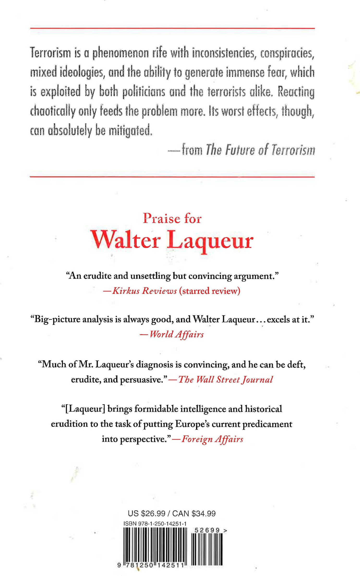 An expert on terrorism and an expert on counterterrorism answer the two questions everyone is asking about the rise of terrorism today: why is this happening, and when will it end? Since the death of bin Laden in 2011, ISIS has risen, al-Qaeda has expanded its reach, and right-wing extremists have surged in the United States for the same simple reason: terrorism works. It's not caused by psychosis or irrationality, as the media often suggests. Instead, it's terrifyingly logical. Violent acts produce political results. To show why, Walter Laqueur and Christopher Wall explore the history, rationales and precepts of terrorism, from the assassination of Tsar Alexander II, through the terror campaigns by Irish and Indian nationalists, and to the Nazis and Italian Fascists. To explain why terror is on the rise again, they show how the American invasion of Iraq created the conditions for the emergence of al-Qaeda in Iraq, part of which metastasized into ISIS, while Russia's increasing intervention in Syria allowed both of the organizations to evolve. The Future of Terrorism brings reason to a topic usually ruled by fear. Laqueur and Wall show the structural features behind contemporary terrorism: how bad governance abets terror; the link between poverty and terrorism; why religious terrorism is more dangerous than secular; and the nature of supposed "lone wolf" terrorists. Fear alone provides no tools to combat the future of terrorism. This book does.