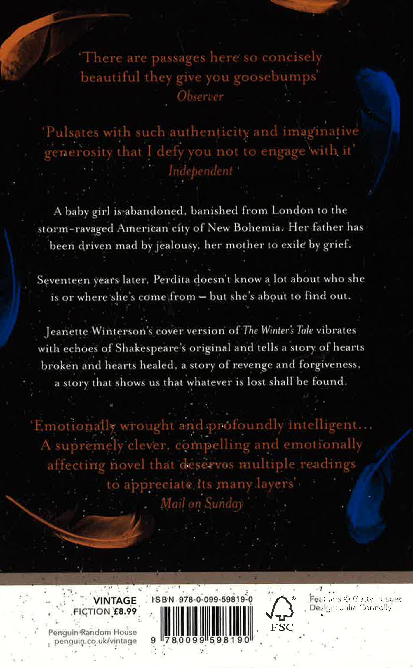 A shining delight of a novel'New York Times 'Clever and beautiful...it soars'Financial Times A baby girl is abandoned, banished from London to the storm-ravaged American city of New Bohemia. Her father has been driven mad by jealousy, her mother to exile by grief. Seventeen years later, Perdita doesn't know a lot about who she is or where she's come from - but she's about to find out. Jeanette Winterson's cover version of The Winter's Tale vibrates with echoes of Shakespeare's original and tells a story of hearts broken and hearts healed, a story of revenge and forgiveness, a story that shows that whatever is lost shall be found.'Emotionally wrought and profoundly intelligent... A supremely clever, compelling and emotionally affecting novel that deserves multiple readings to appreciate its many layers'Mail on Sunday 'There are passages here so concisely beautiful they give you goosebumps'Observer'Pulsates with such authenticity and imaginative generosity that I defy you not to engage with it'Independent