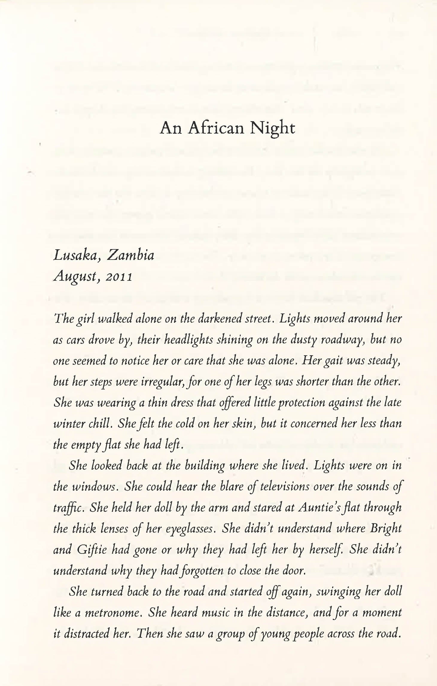 Zoe Fleming is an American attorney working with an NGO devoted to combatting child sexual assault in Lusaka, Zambia. When an adolescent girl is raped in the dark of night and delivered by strangers to the hospital, Zoe?s organization is called in to help. Working alongside Zambian police officer Joseph Kabuta, Zoe learns that the girl?s assailant was not a street kid or a pedophile but the son of a powerful industrialist with deep ties to the Zambian government. As the prosecution against him grinds forward, hampered by systemic corruption and bureaucratic inertia, Zoe and Joseph?s search for the truth takes them from Lusaka?s roughest neighborhoods to the wild waters of Victoria Falls, to the AIDS-ridden streets of Johannesburg and the splendour of Cape Town. As the rape trial builds to a climax and sends shockwaves through Zambian society, Zoe must radically reshape her assumptions about love, loyalty, family and, especially, the meaning of justice.