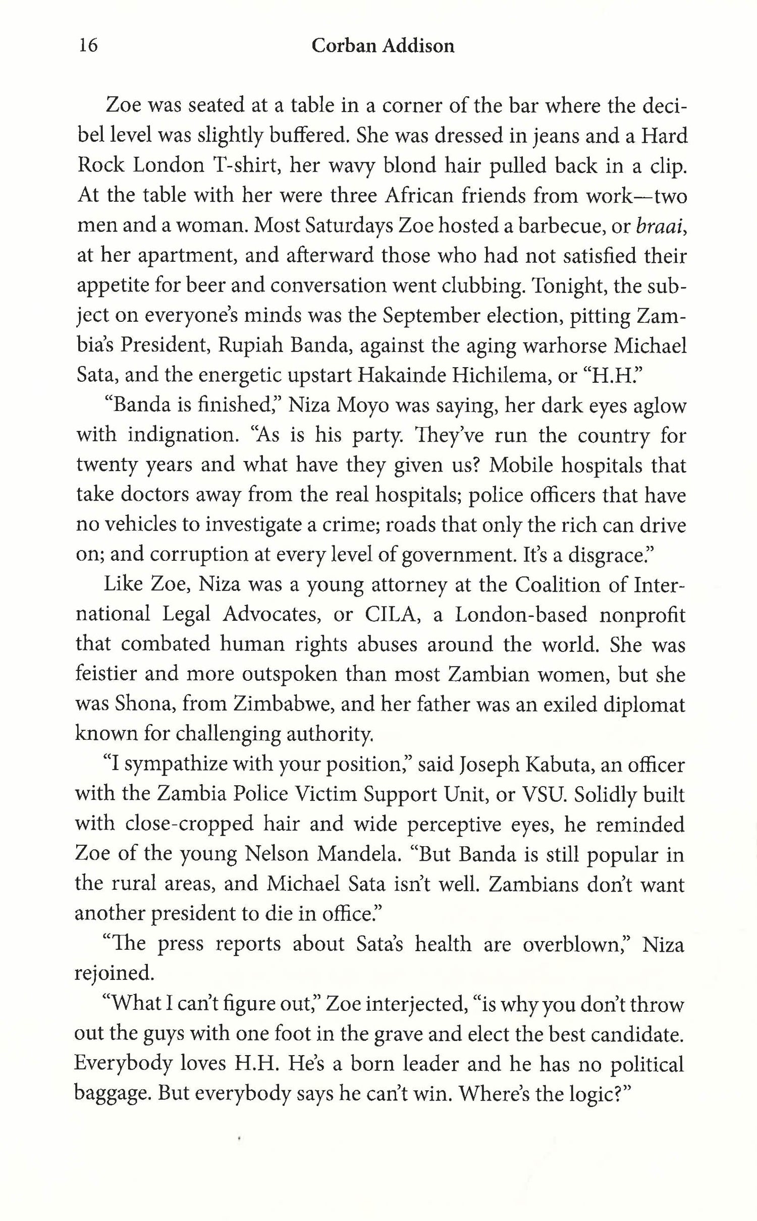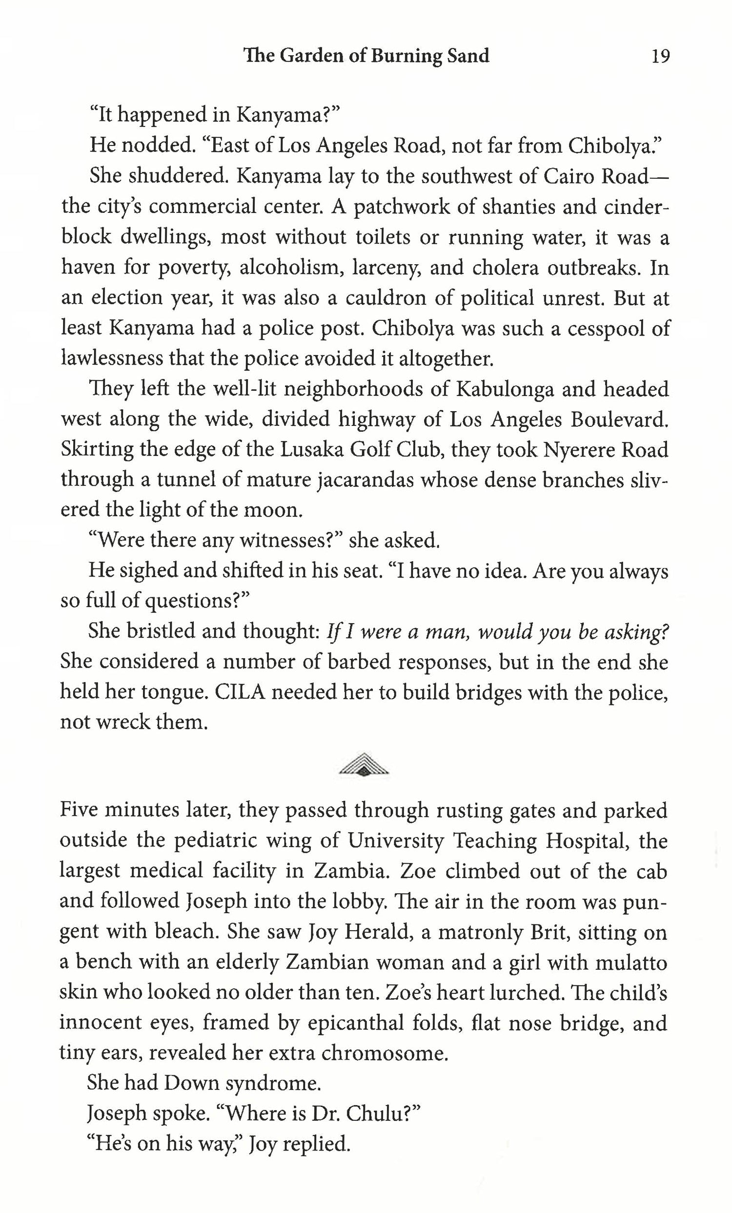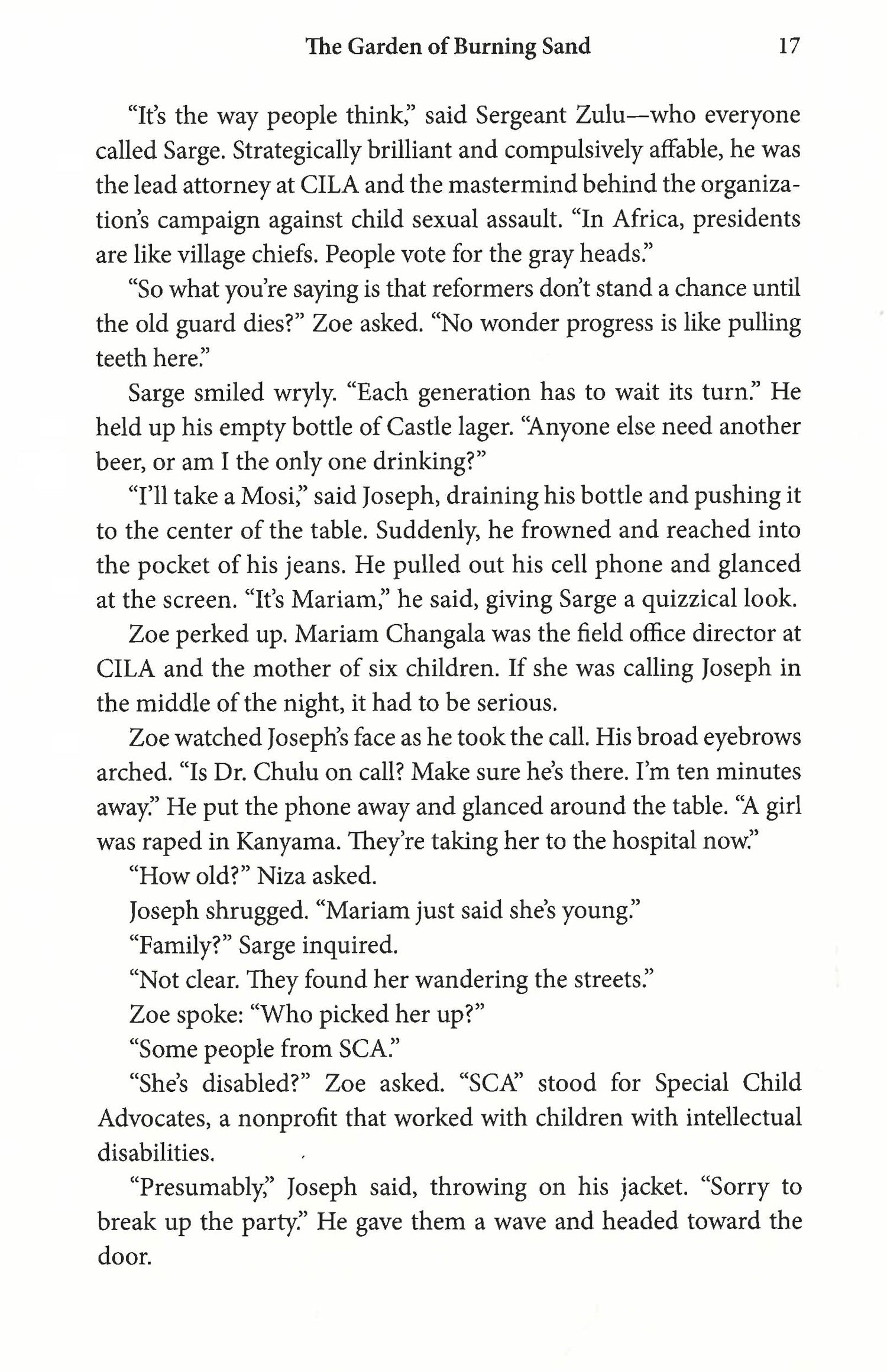 Zoe Fleming, an accomplished young human rights attorney, has made a life for herself in Zambia, far from her estranged father--an American business mogul with presidential aspirations--and from the devastating betrayals of her past.When a young girl with Down syndrome is sexually assaulted in a Lusaka slum, Zoe joins Zambian police officer Joseph Kabuta in investigating the rape. Piecing together clues from the victim's past, they discover an unsettling connection between the girl--Kuyeya--and a powerful Zambian family who will stop at nothing to bury the truth.As they are drawn deeper into the complex web of characters behind this appalling crime, Zoe and Joseph forge a bond of trust and friendship that slowly transforms into love. Opposed on all sides, they find themselves caught in a dangerous clash between the forces of justice and power. To successfully prosecute Kuyeya's attacker and build a future with Joseph, Zoe must risk her life and her heart--and confront the dark past she thought she had left behind.