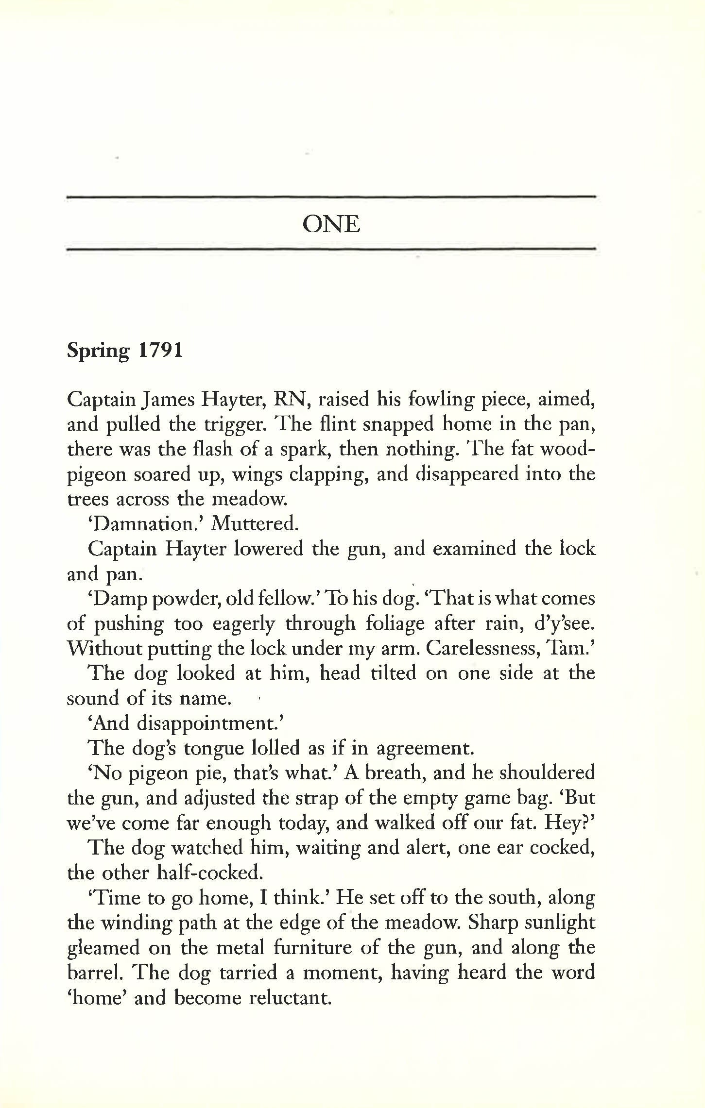Its Spring 1791. Though deeply disturbed by a terrible incident in his previous commission, James Hayter is nevertheless on the verge of taking command of HMS Sloop Eglantine as Master and Commander when personal tragedy shatters his life. The twin blows convince Hayter that he is not fit to command and he must turn his back on the sea forever.