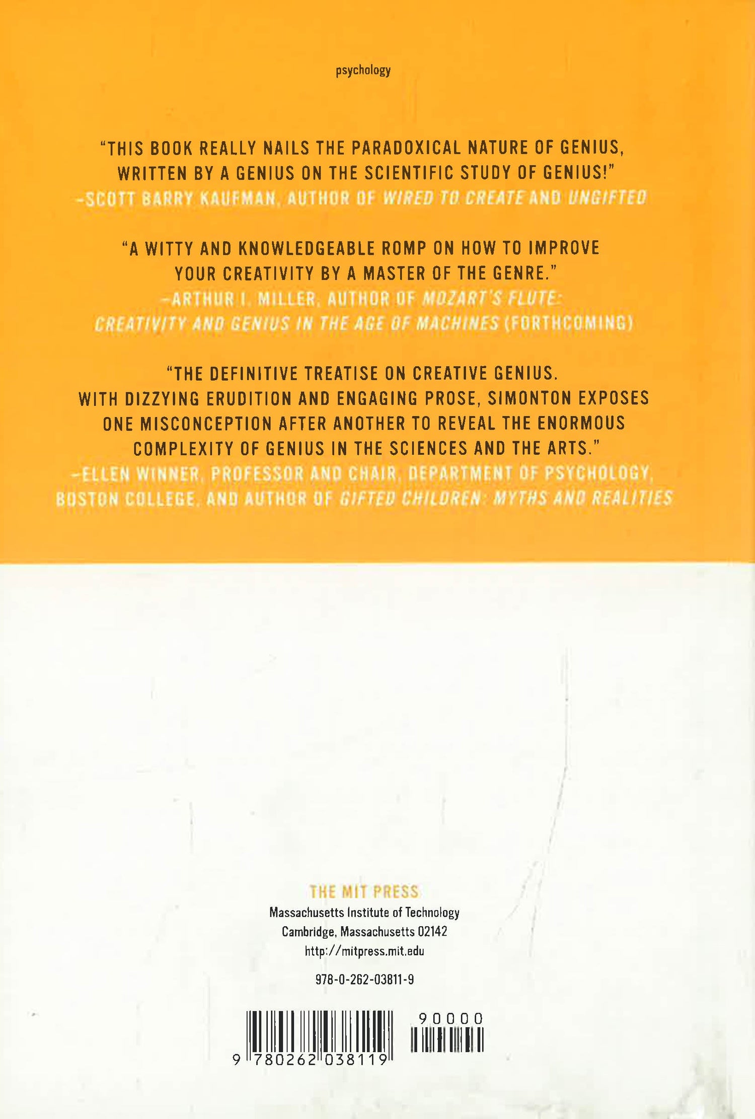 Genius, Simonton explains, operates in ways so subtle that they seem contradictory. Genius is born and made, the domain of child prodigies and their elders. Simonton's checklist gives us a new, integrative way to understand geniuses―and perhaps even to nurture your own genius!