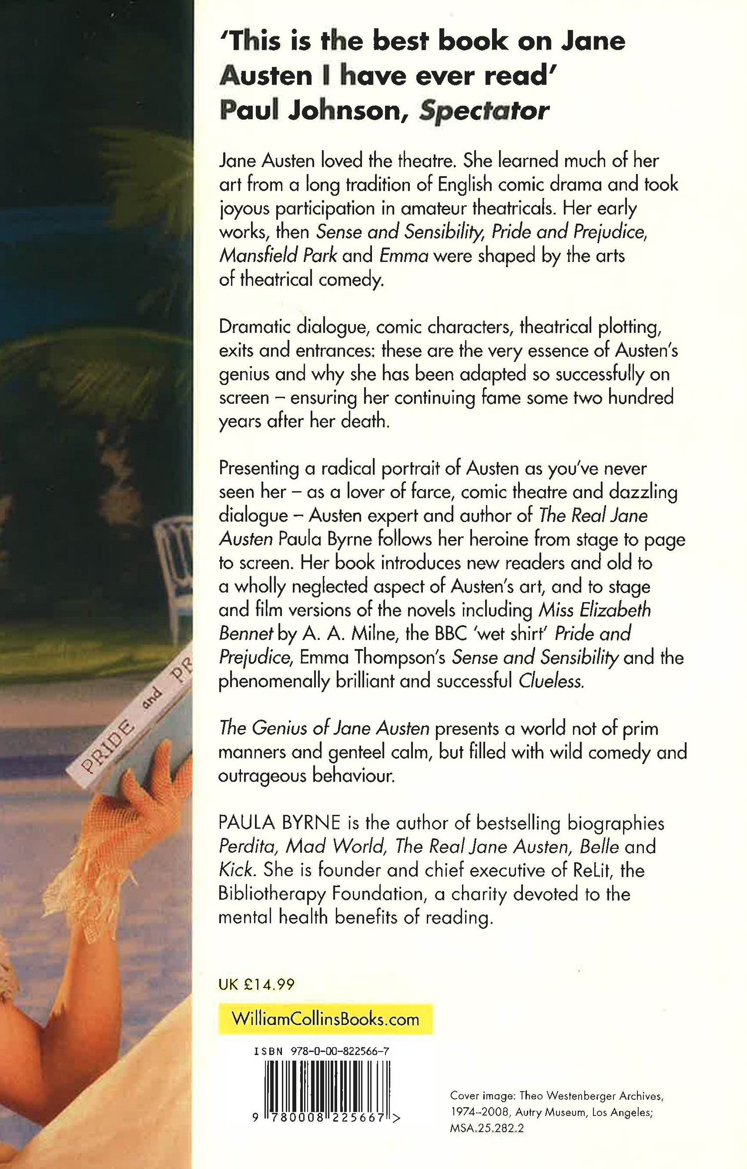 A radical look at Jane Austen As you've never seen her - as a lover of farce, comic theatre and juvenilia. The Genius of Jane Austen celebrates Britain's favourite novelist 200 years after her death and explores why her books make such awesome movies, time after time. Jane Austen loved the theatre. She learned much of her art from a long tradition of English comic drama and took joyous participation in amateur theatricals. Her juvenilia, then Sense and Sensibility, Pride and Prejudice, Mansfield Park and Emma were shaped by the arts of theatrical comedy. Her admiration for drama's dialogue, characterisation, plotting, exits and entrances is why she has been dramatised so successfully on screen in the last twenty years - and these versions are at the centre of her continuing fame, culminating in her celebration on GBP10 note. Austen expert and author of The Real Jane Austen, Paula Byrne looks at stage adaptations of Austen's novels (including one called Miss Elizabeth Bennet by A. A. Milne) to modern classics, including the BBC Pride and Prejudice and Persuasion, Emma Thompson's Sense and Sensibility, and the phenomenally brilliant and successful Clueless, The Genius of Jane Austen presents an Austen not of prim manners and genteel calm, but filled with wild comedy and outrageous behaviour.
