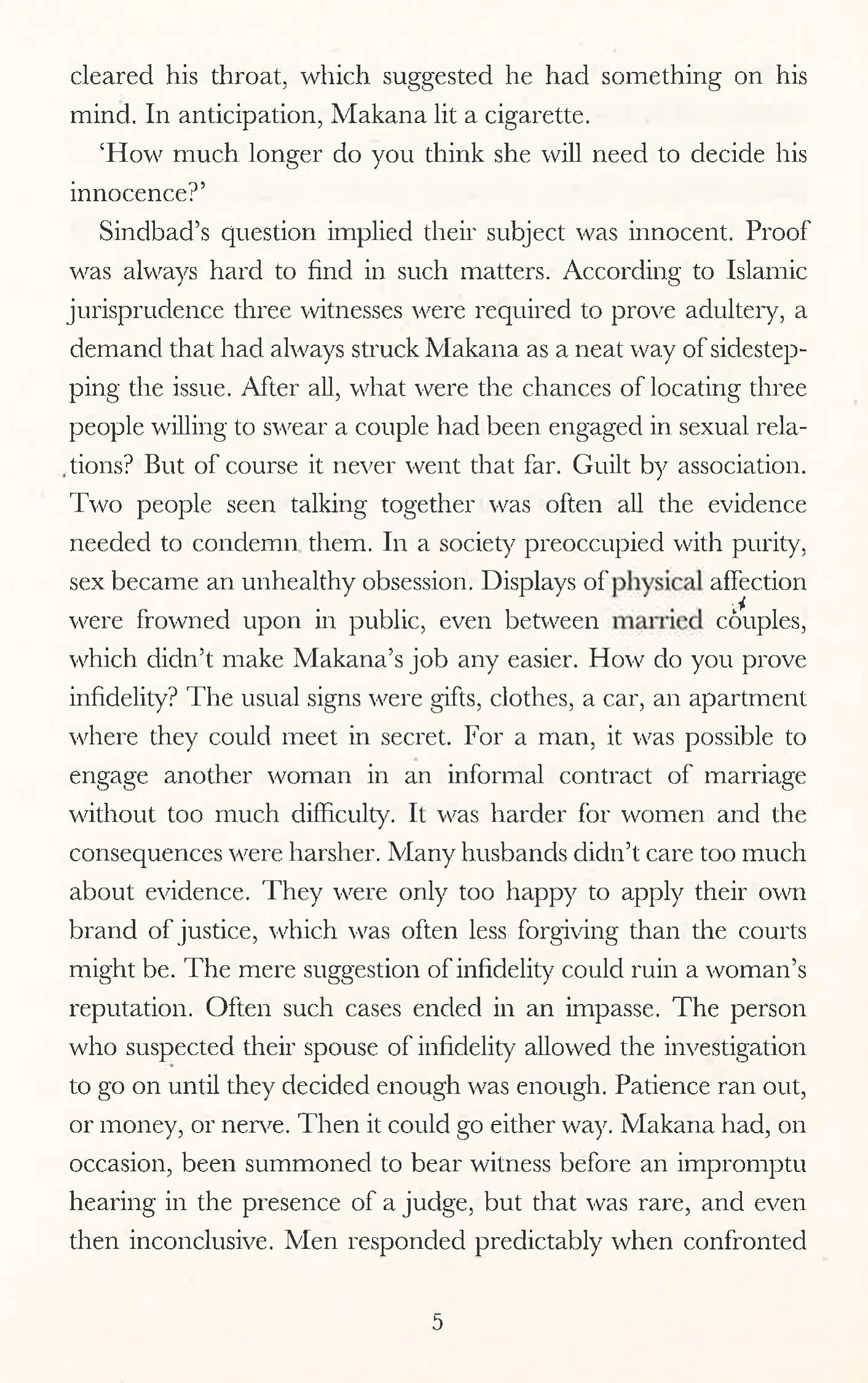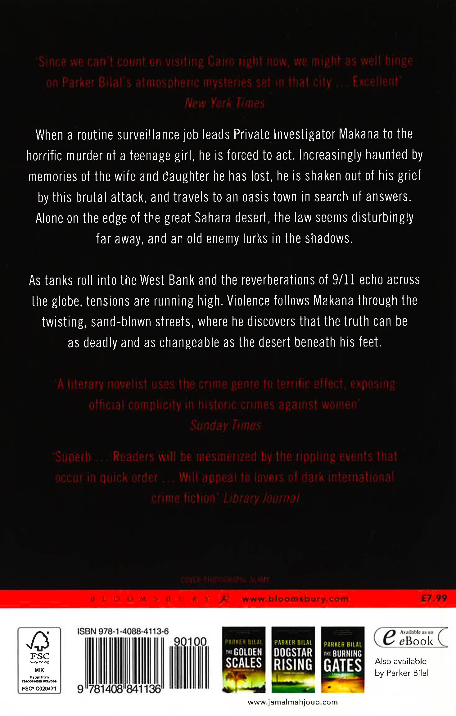 It is 2002 and as tanks roll into the West Bank and the reverberations of 9/11 echo across the globe, tensions are running high on Cairo's streets. Private Investigator Makana, in exile from his native Sudan and increasingly haunted by memories of the wife and daughter he lost, is shaken out of his grief when a routine surveillance job leads him to the horrific murder of a teenage girl. Seeking answers, he travels to Siwa, an oasis town on the edge of the great Sahara desert, where the law seems disturbingly far away. As violence follows him through the twisting, sand-blown streets and an old enemy lurks in the shadows, Makana discovers that the truth can be as deadly and as changeable as the desert beneath his feet