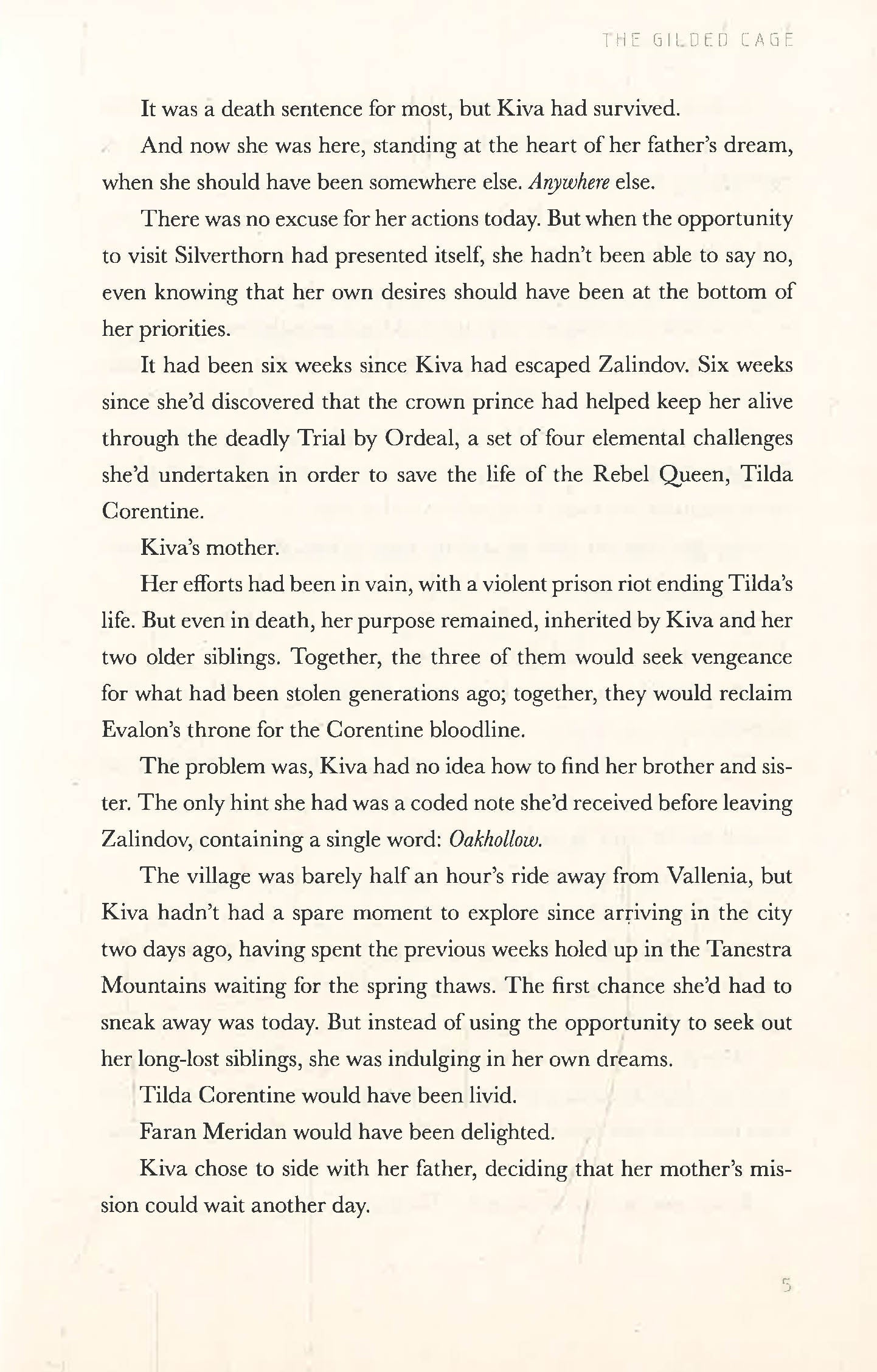 She survived not only Zalindov prison, but also the deadly Trial by Ordeal. Now Kiva's purpose goes beyond survival to vengeance. For the past ten years, her only goal has been to reunite with her family and destroy the people responsible for ruining their lives. But now that she has escaped Zalindov, her mission has become more complicated than ever.
