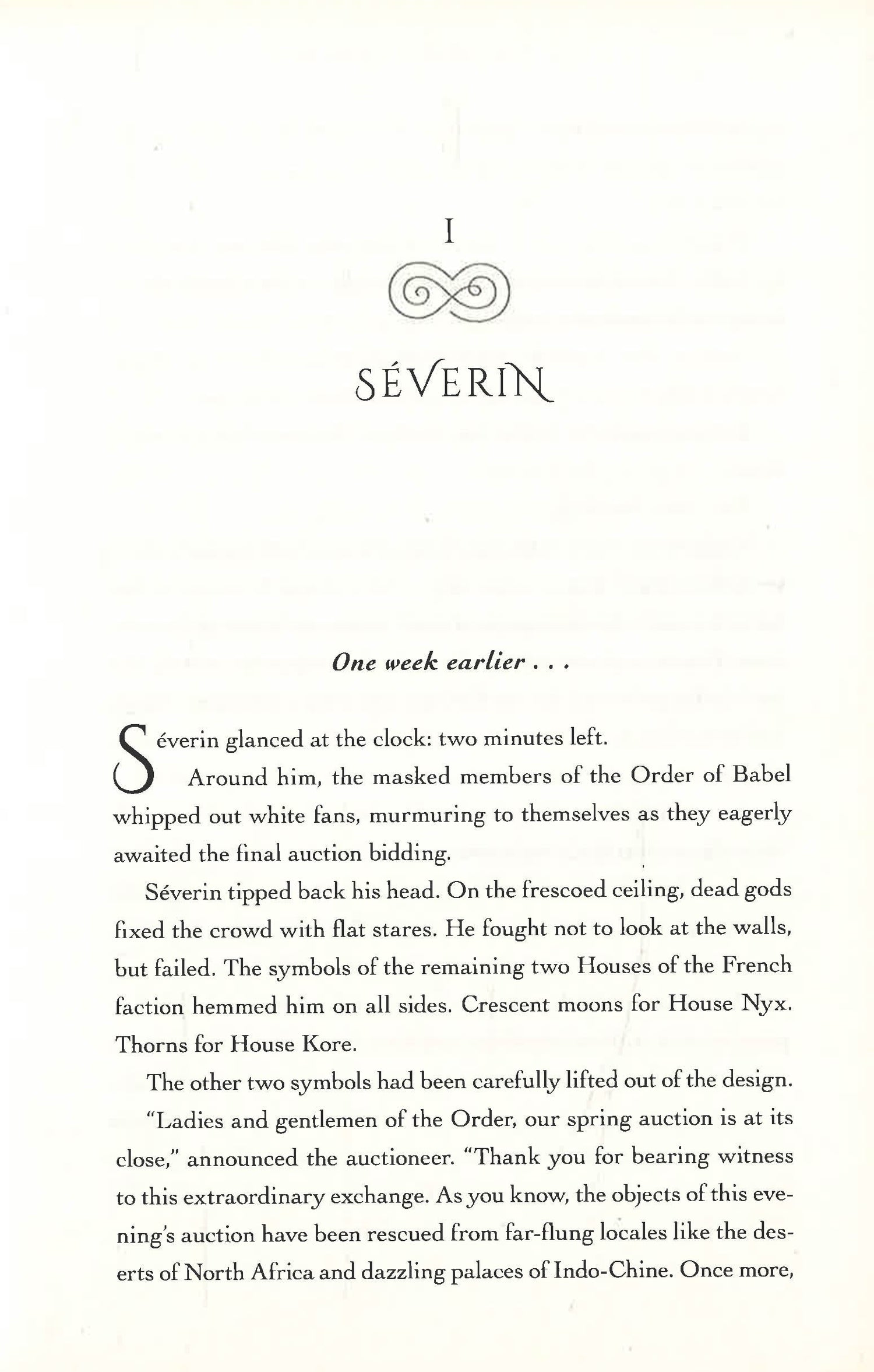 Séverin Montagnet-Alarie's birthright was stolen from him. Now, to reclaim his rightful place among France’s elite, he must obtain the Babel fragment for the Order. It is a heist that will require the ingenuity and skills of those with nothing to lose and everything to gain: Enrique, a gifted historian and wordsmith, caught between two worlds; Zofia, a brilliant Forging artist and engineer, separated from her family; Hypnos, a rival aristocrat who needs an ally among the Order; Tristan, an extraordinary Forger raised at Séverin’s side, loyal to his adopted brother’s quest; and Laila, the mysterious dancer and espionage artist who stole Séverin’s heart in a moment of vulnerability he couldn’t afford.