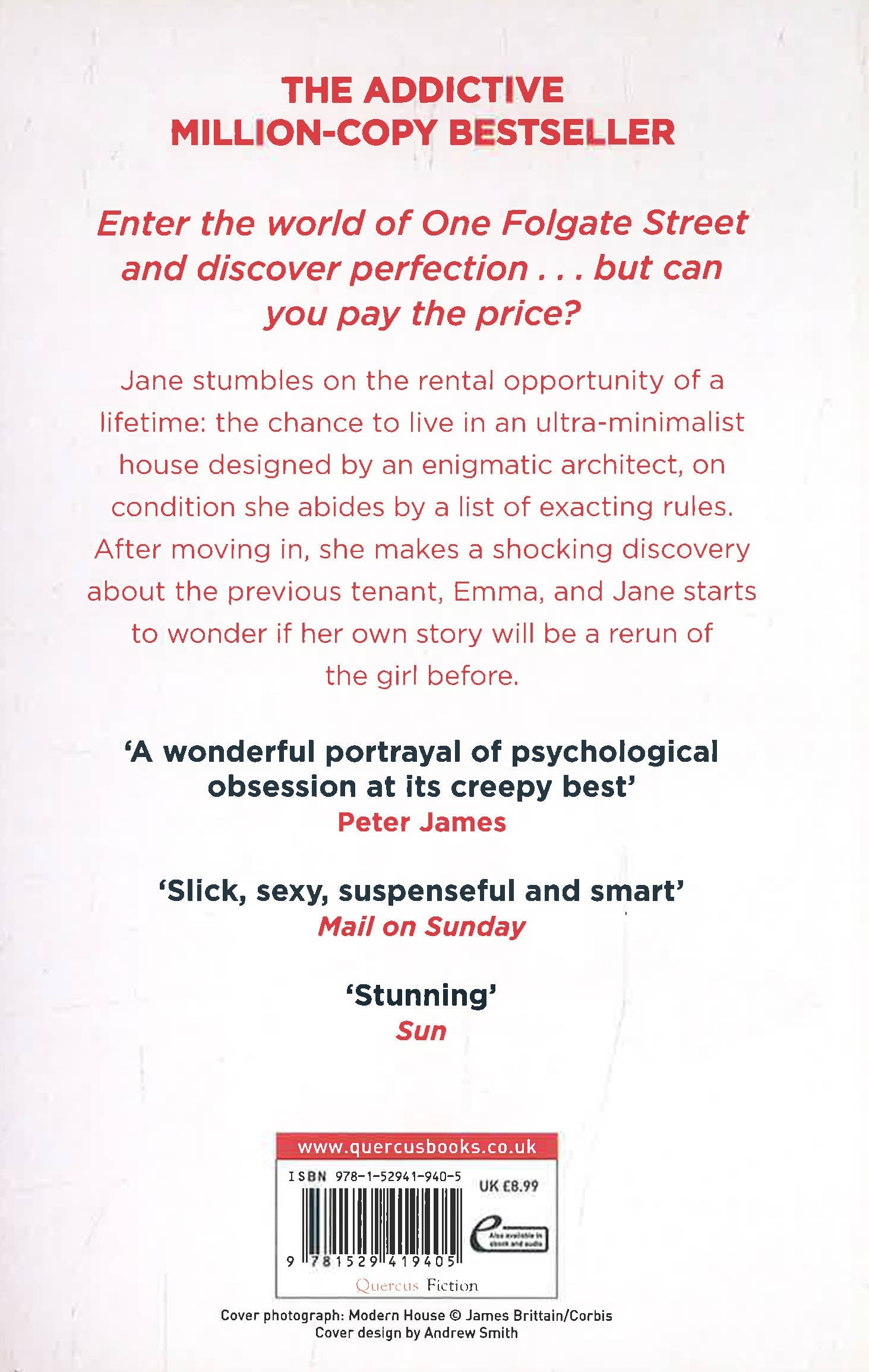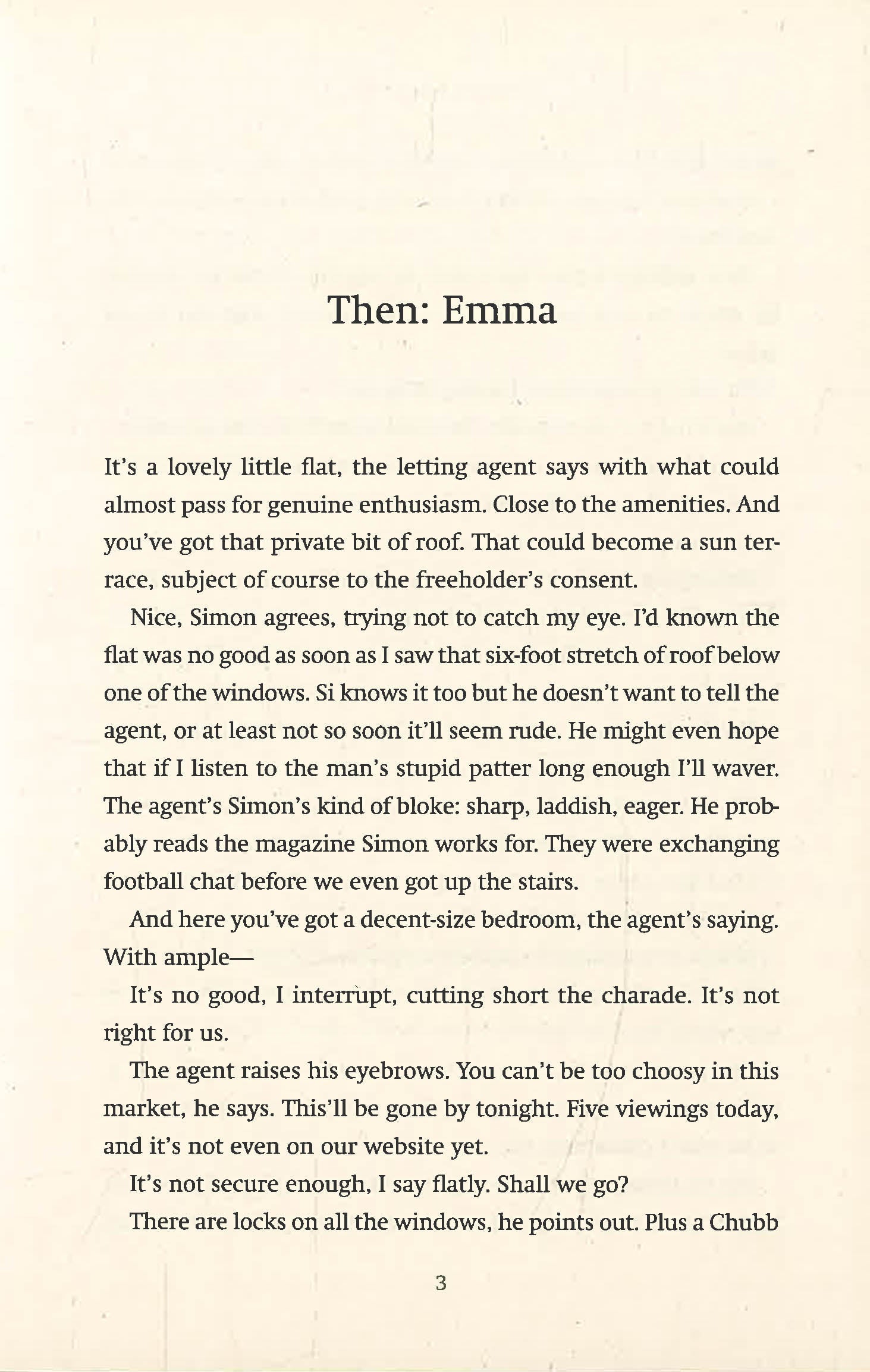 After moving in, she makes a shocking discovery about the previous tenant, Emma, and Jane starts to wonder if her own story will be a rerun of the girl before.