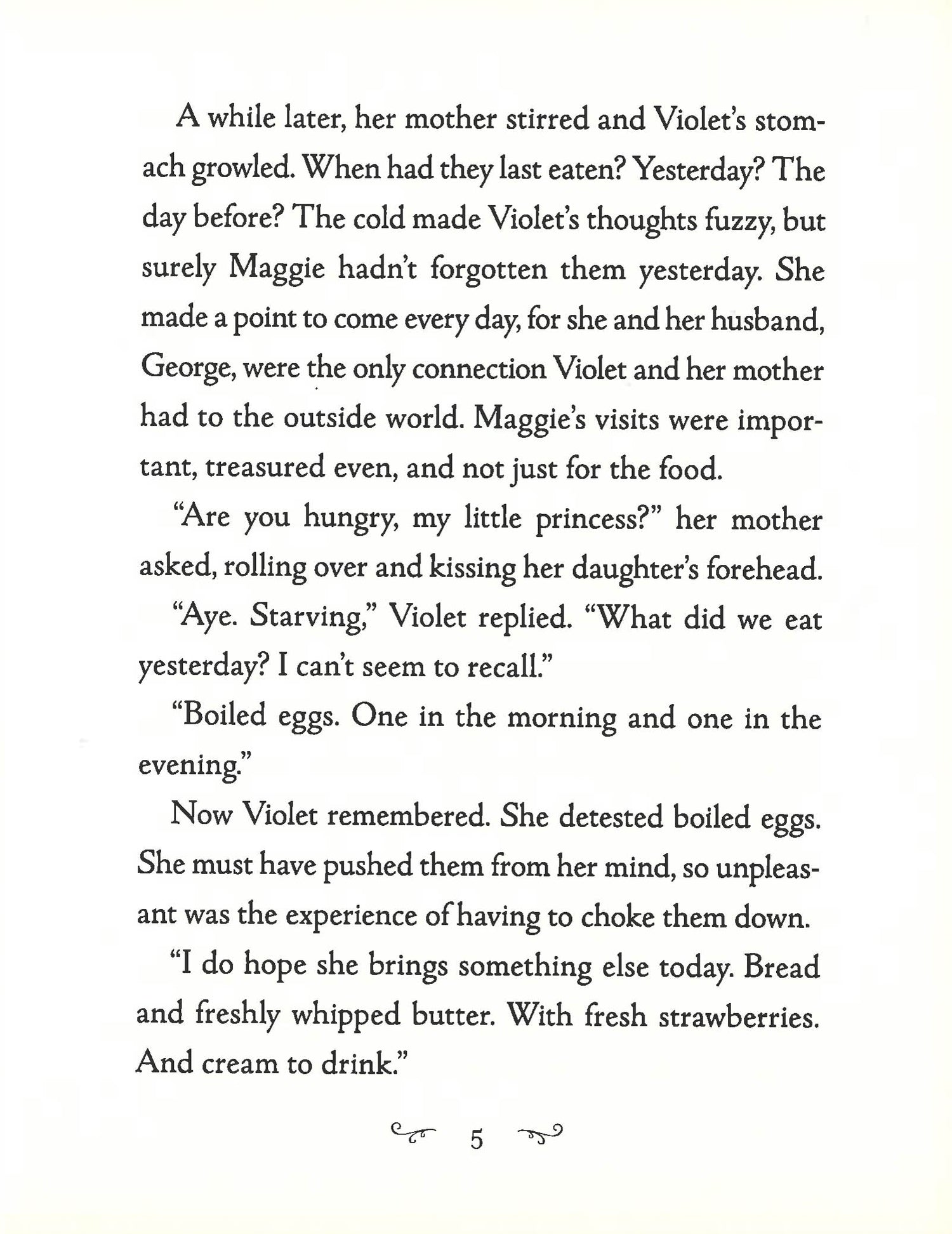 Ever since she could remember, Violet and her mother have been locked away in a tower by the evil Queen Bogdana, who has the kingdom under her spell. The queen has all she wants except one thing - beauty. Violet possesses this beauty. She also has a secret: though she is very small, both her spirit and her heart are mighty.When Violet is summoned by Bogdana to start training to become a real princess, it seems like her life might be taking a turn for the better. But hope quickly fades when Violet's mother is expelled from the castle and they're forbidden to see each other ever again. With everyone's lives in the balance, it's up to Violet to break the spell and reunite her family.