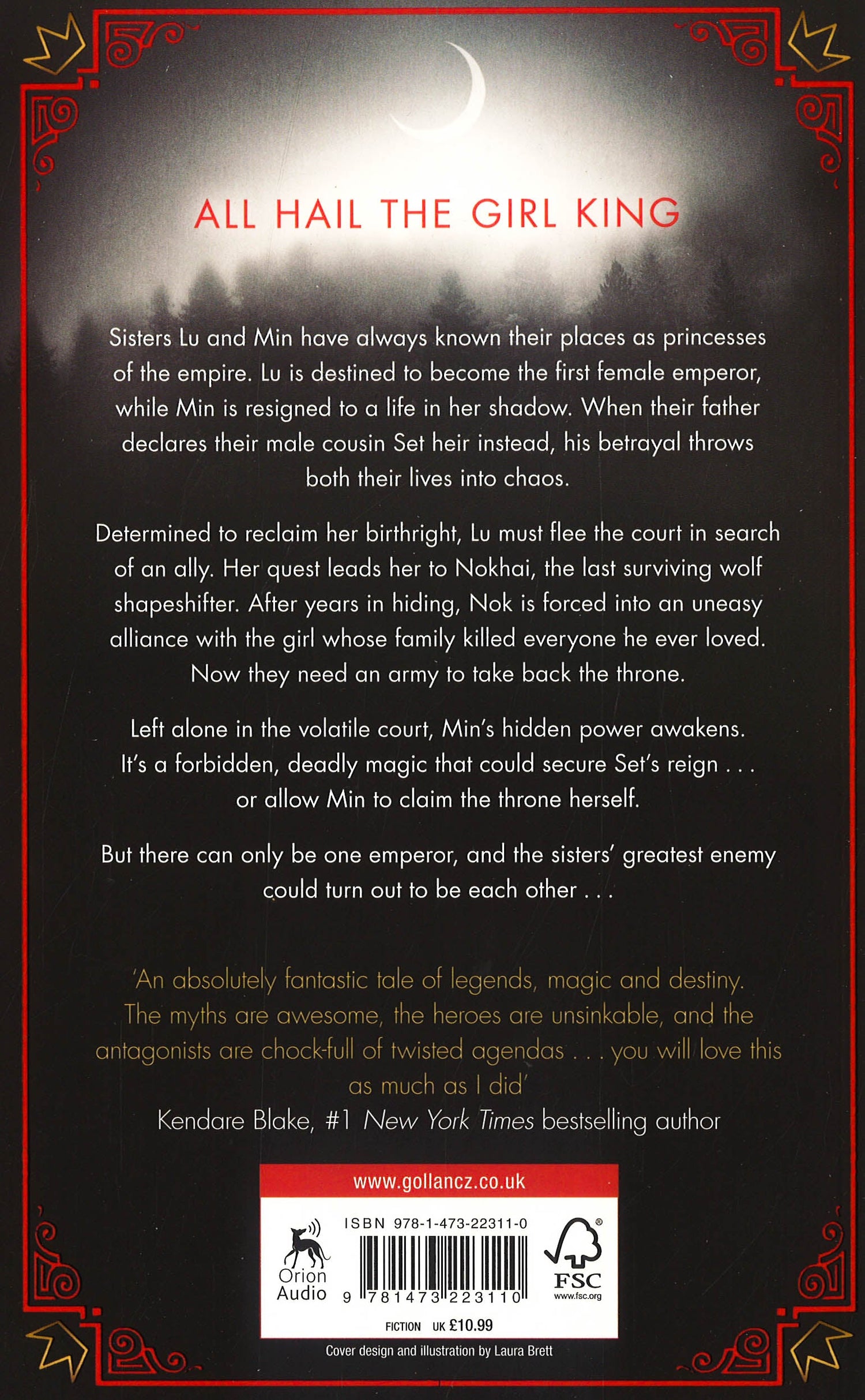 With incredible rave reviews from bestselling YA authors Samantha Shannon and Kendare Blake, this is the book that bloggers are all hailing the next big thing in YA for 2019.Two sisters become unwitting rivals in a war to claim the title of Emperor in this sweeping tale of ambition, sacrifice and betrayal for readers of Tomi Adeyemi, Kendare Blake and Samantha Shannon.All hail the Girl KingSisters Lu and Min have always known their places as princesses of the empire. Lu is destined to become the first female emperor, while Min is resigned to a life in her shadow. When their father declares their male cousin heir instead, his betrayal throws both their lives into chaos. Determined to reclaim her birthright, Lu must flee the court in search of an ally. Her quest leads her to Nokhai, the last surviving wolf shapeshifter. After years in hiding, Nok is forced into an uneasy alliance with the girl whose family killed everyone he ever loved. Now they need an army to take back the throne. Left alone in the volatile court, Min's hidden power awakens. It's a forbidden, deadly magic that could secure Set's reign . . . or allow Min to claim the throne herself.But there can only be one emperor, and the sisters' greatest enemy could turn out to be each other . . .