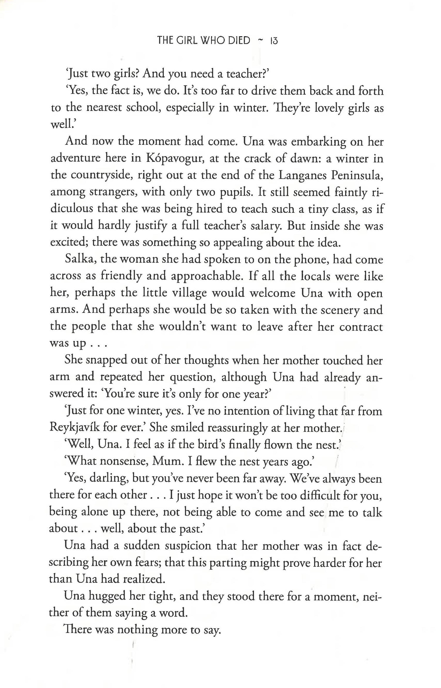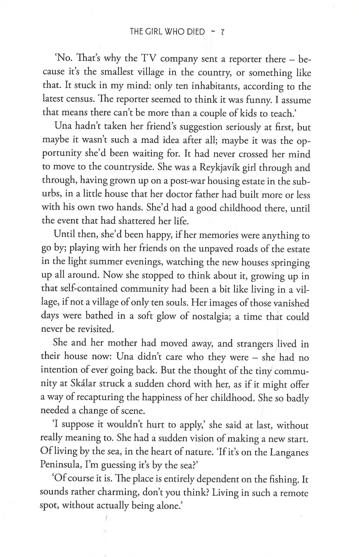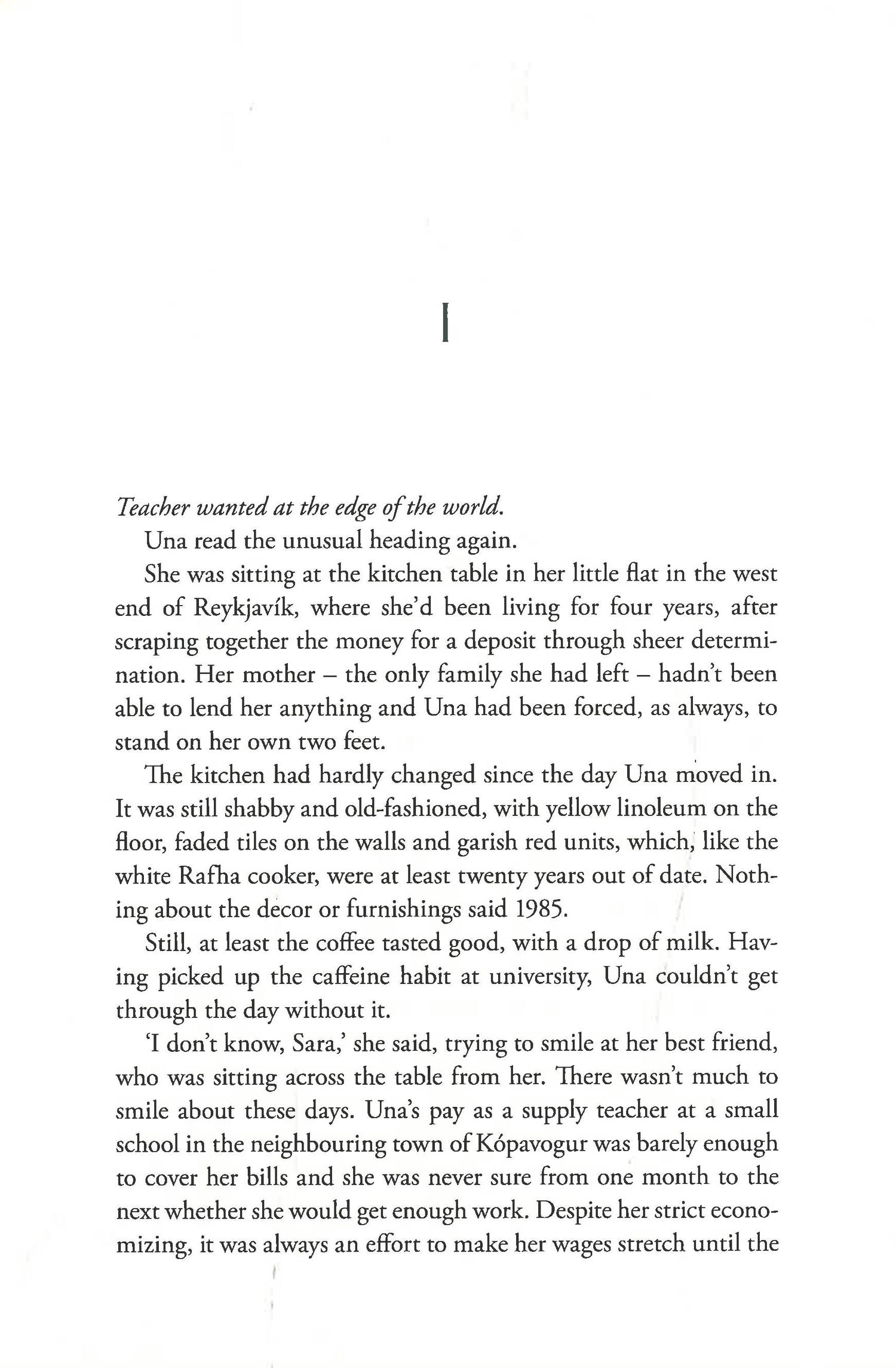 Una wants nothing more than to teach, but she has been unable to secure steady employment in Reykjavík. Her savings are depleted, her love life is nonexistent, and she cannot face another winter staring at the four walls of her shabby apartment. Celebrating Christmas and ringing in 1986 in the remote fishing hamlet of Skálar seems like a small price to pay for a chance to earn some teaching credentials and get her life back on track.