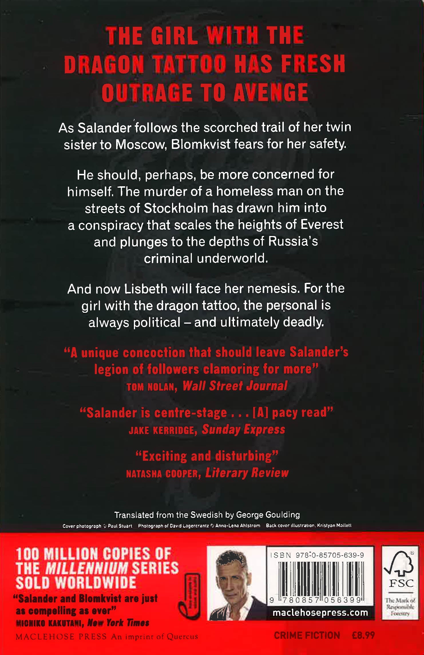 And now Lisbeth will face her nemesis. For the girl with the dragon tattoo, the personal is always political - and ultimately deadly.