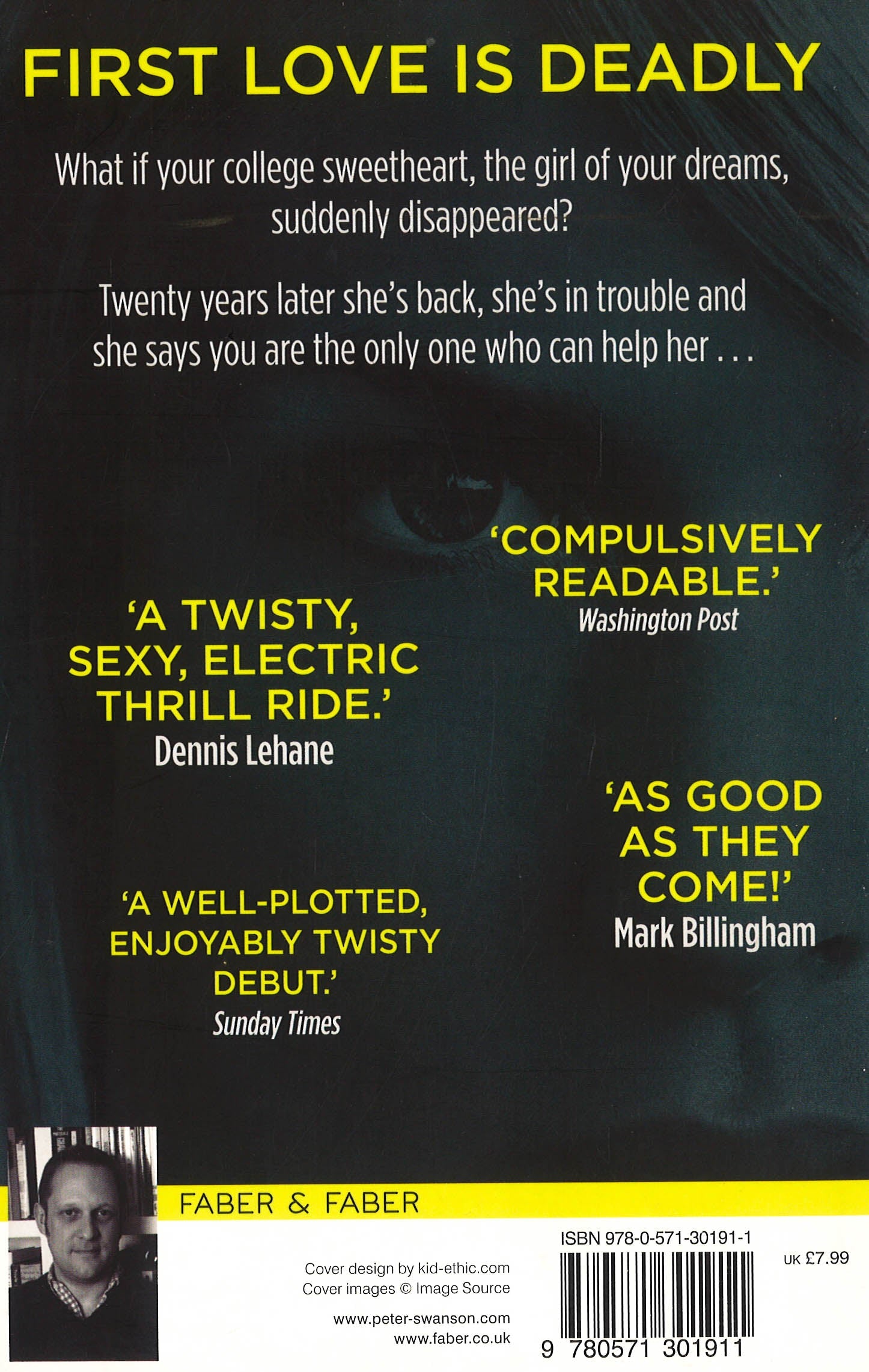 First Love is Deadly. What if your college sweetheart, the girl of your dreams, suddenly disappeared? Twenty years later she's back, she's in trouble and she says you are the only one who can help her..."Very hard not to read in one sitting". (Alison Flood, Observer). "A twisty, sexy, electric thrill ride". (Dennis Lehane). "Takes your breath away ...a plot that twists like a corkscrew". (Daily Mail). "A well-plotted, enjoyably twisty debut". (Sunday Times).
