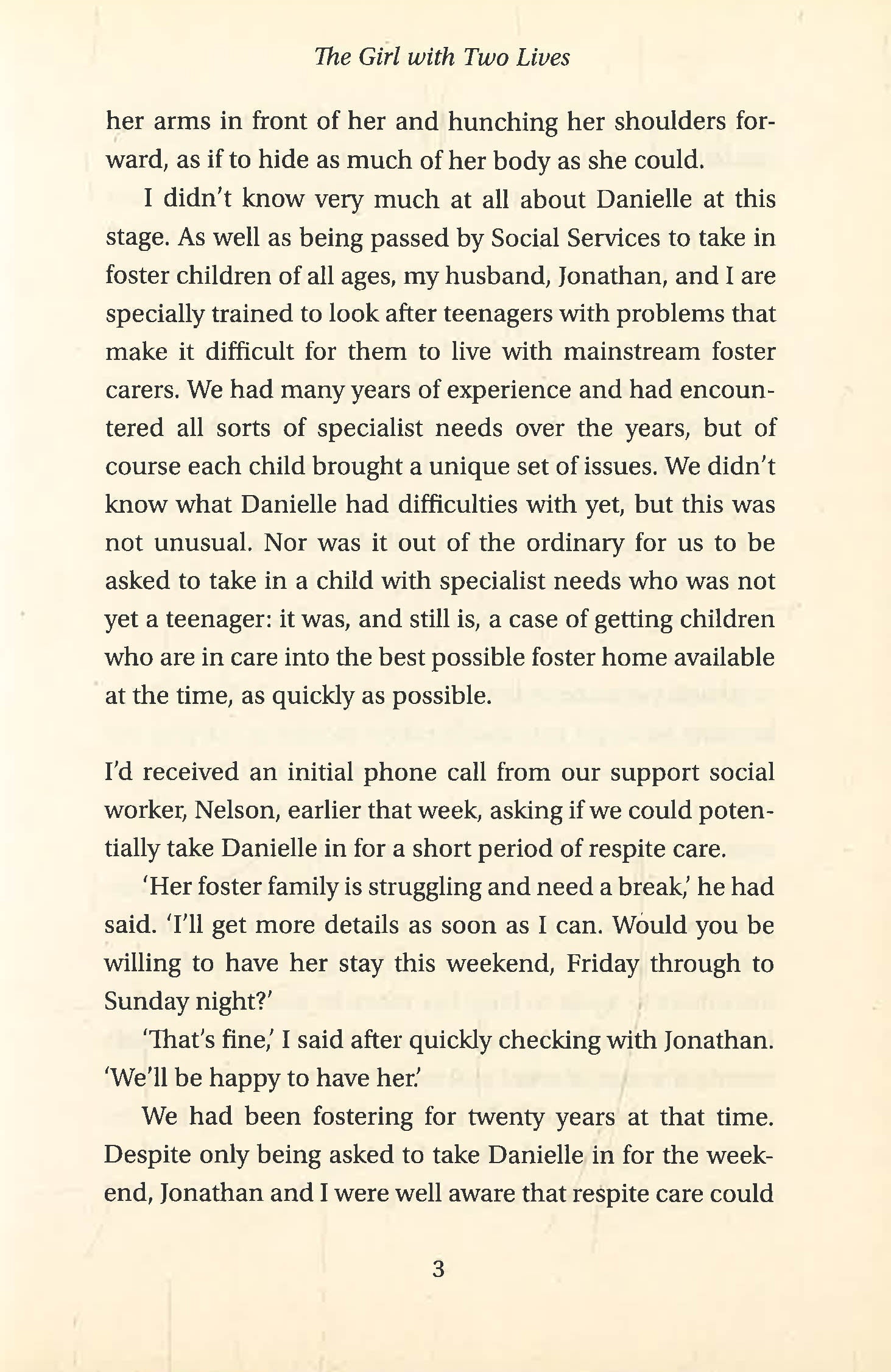 Twelve year old Danielle has been excluded from a special school and her former foster family can no longer cope. She arrives as an emergency placement at the home of foster carer Angela, who soon suspects that there is more to the young girl's disruptive behaviour than meets the eye. Can Angela's specialist training unlock the horrors of Danielle's past and help her start a brave new life?