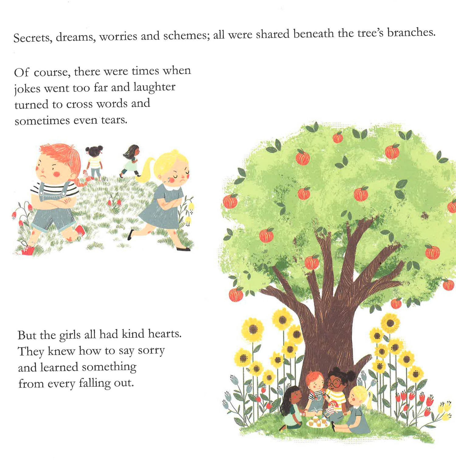 Four little girls meet under an apple tree and form a bond that grows as they share secrets, dreams, worries and schemes. This beautifully illustrated tale charts the girls' lives through ups and downs and laughter and tears. Find out how their friendship flourishes as the years pass by and the girls become women.