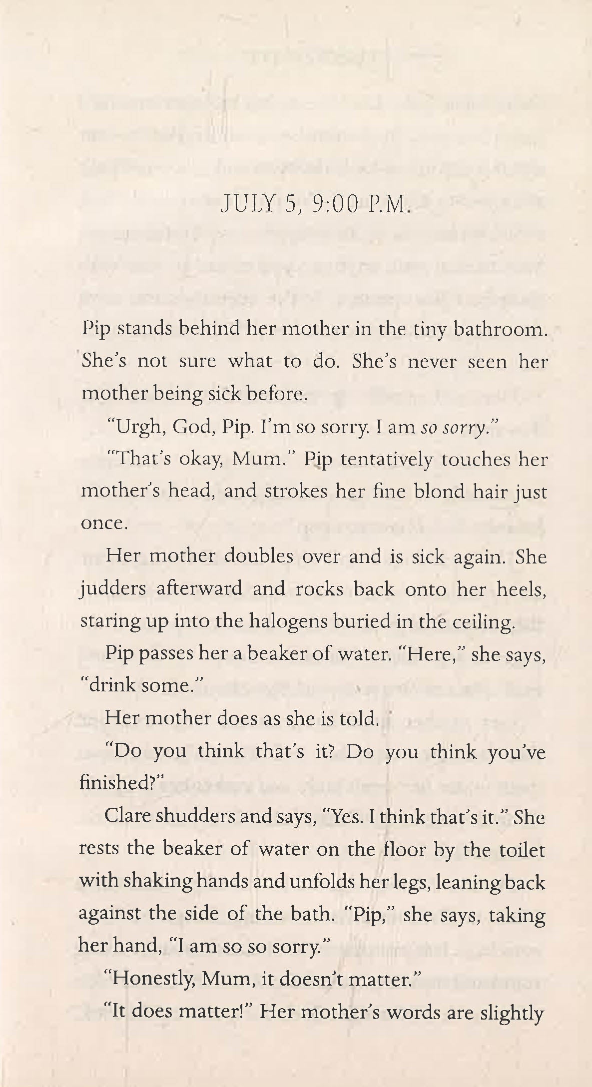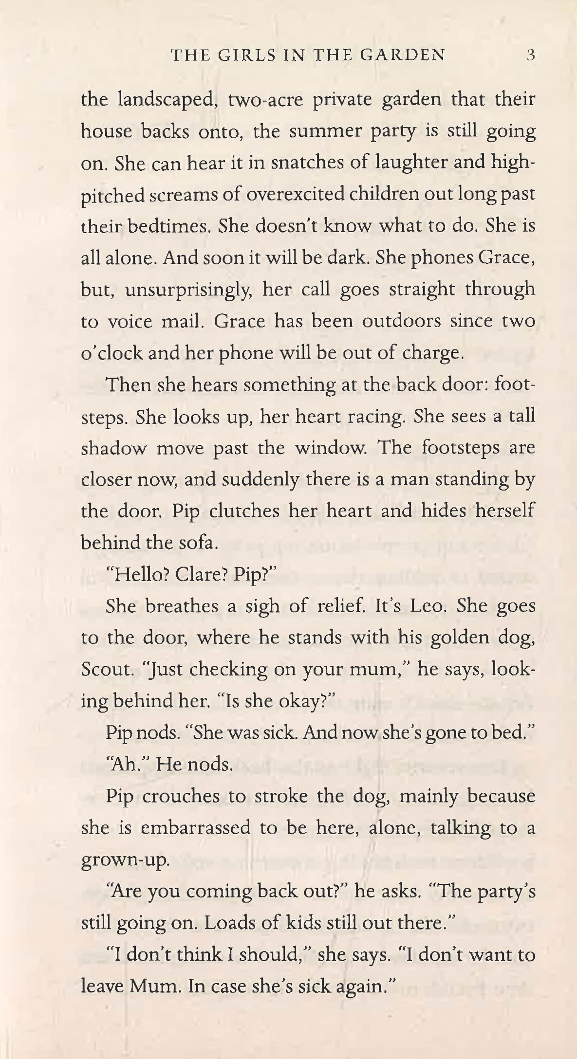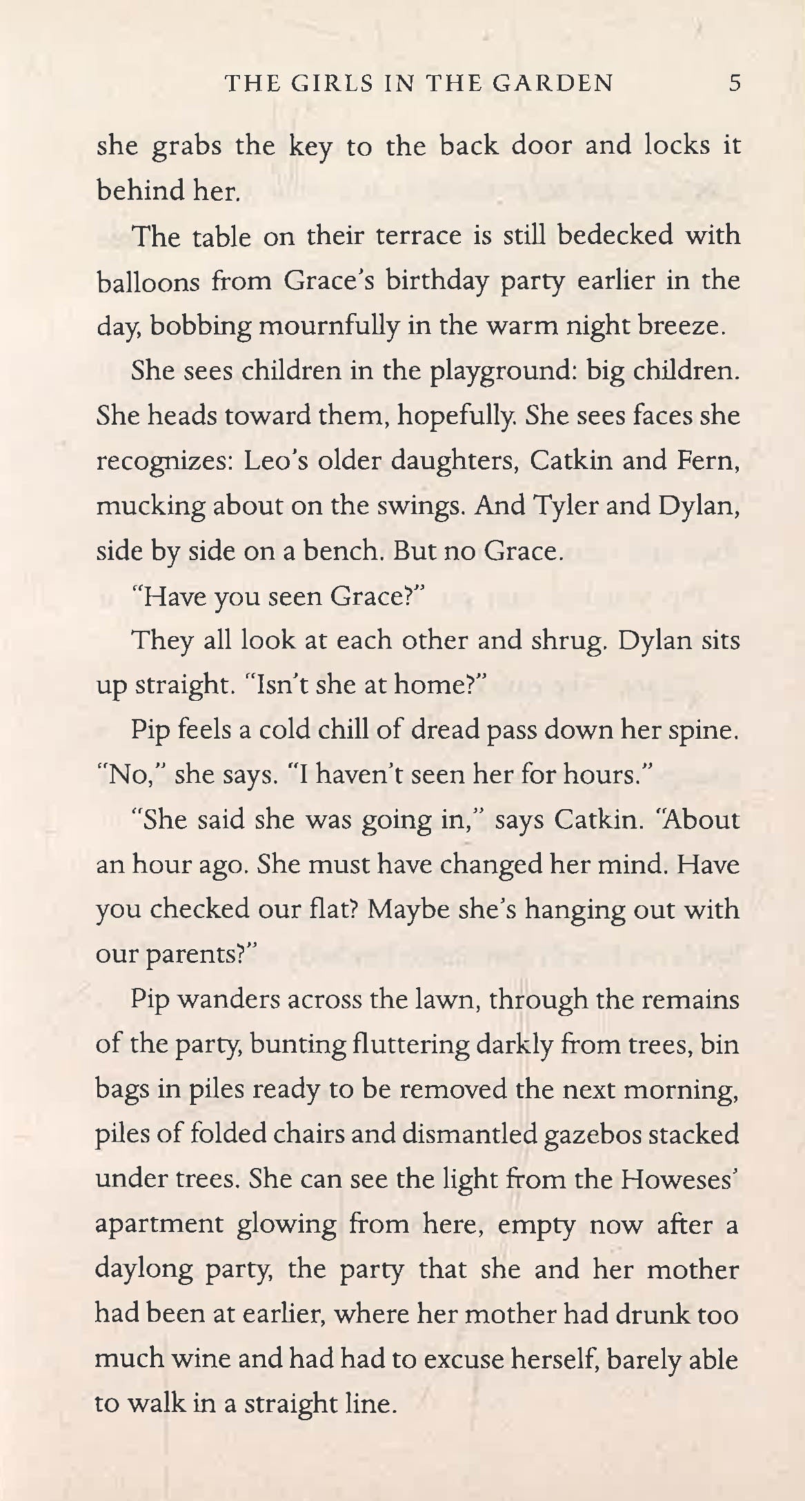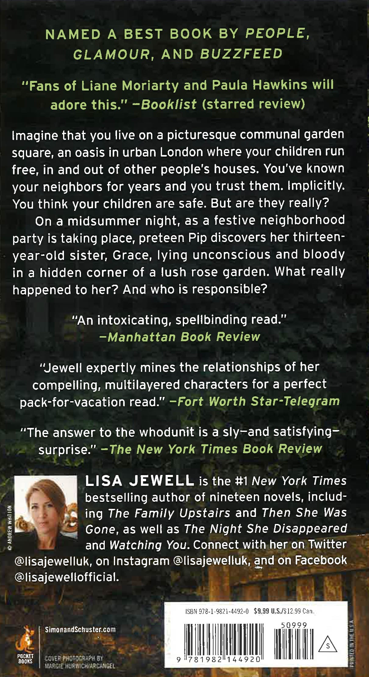 On a midsummer night, as a festive neighborhood party is taking place, preteen Pip discovers her thirteen-year-old sister Grace lying unconscious and bloody in a hidden corner of a lush rose garden. What really happened to her? And who is responsible?