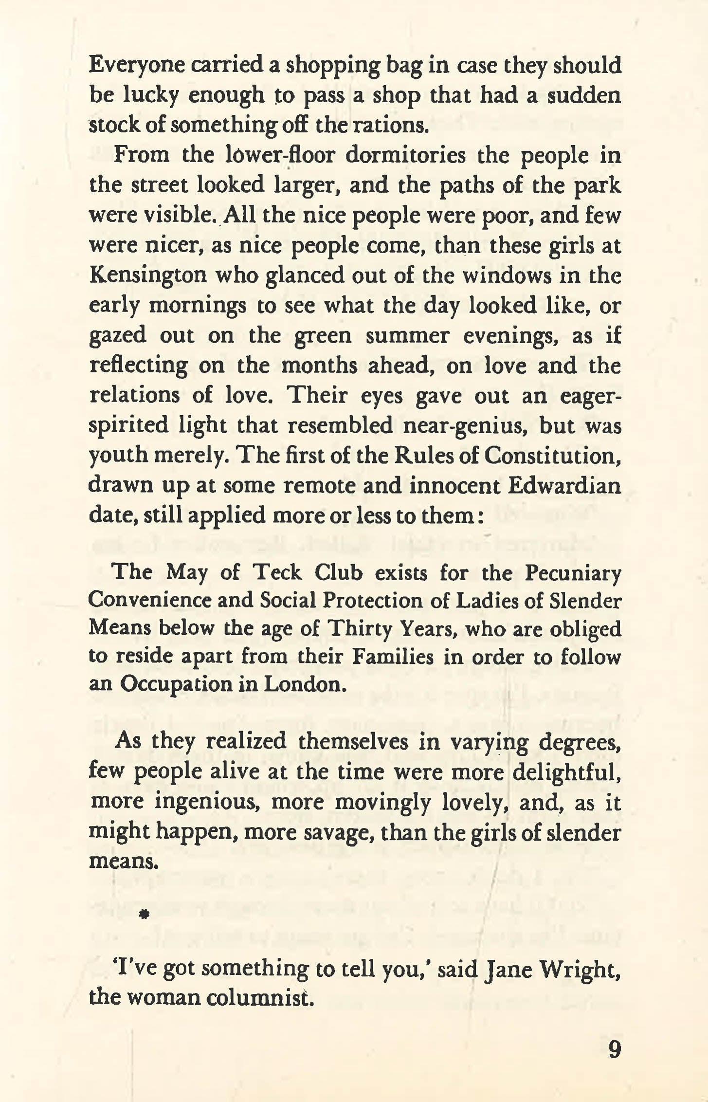 Beautifully packaged reissue of one of Muriel Spark's best loved novels, The Girls of Slender Means'Long ago in 1945 all the nice people in England were poor, allowing for exceptions'In the May of Teck Club - a London hostel 'three times window shattered since 1940 but never directly hit' - the young lady residents do their best to act as if the war never happened. They practice elocution, and jostle one another over suitors and a single Schiaparelli gown. But behind the girls' giddy literary and amorous peregrinations they hide some tragically painful secrets and wounds.'You girls are my vocation . . . I am dedicated to you in my prime''Reading the novel as a young woman was a random gift; rereading it today is to encounter the rarest of fiction and to appreciate the early and enduring genius of Muriel Spark' Carol Shields, Guardian'One of Spark's most evocative novels' Anne TaylorMuriel Spark was born and educated in Edinburgh. She was active in the field of creative writing since 1950, when she won a short-story writing competition in the Observer, and her many subsequent novels include Memento Mori (1959), The Ballad of Peckham Rye (1960), The Prime of Miss Jean Brodie (1961), The Girls of Slender Means (1963) and Aiding and Abetting (2000). She also wrote plays, poems, children's books and biographies. She became Dame Commander of the British Empire in 1993, and died in 2006.