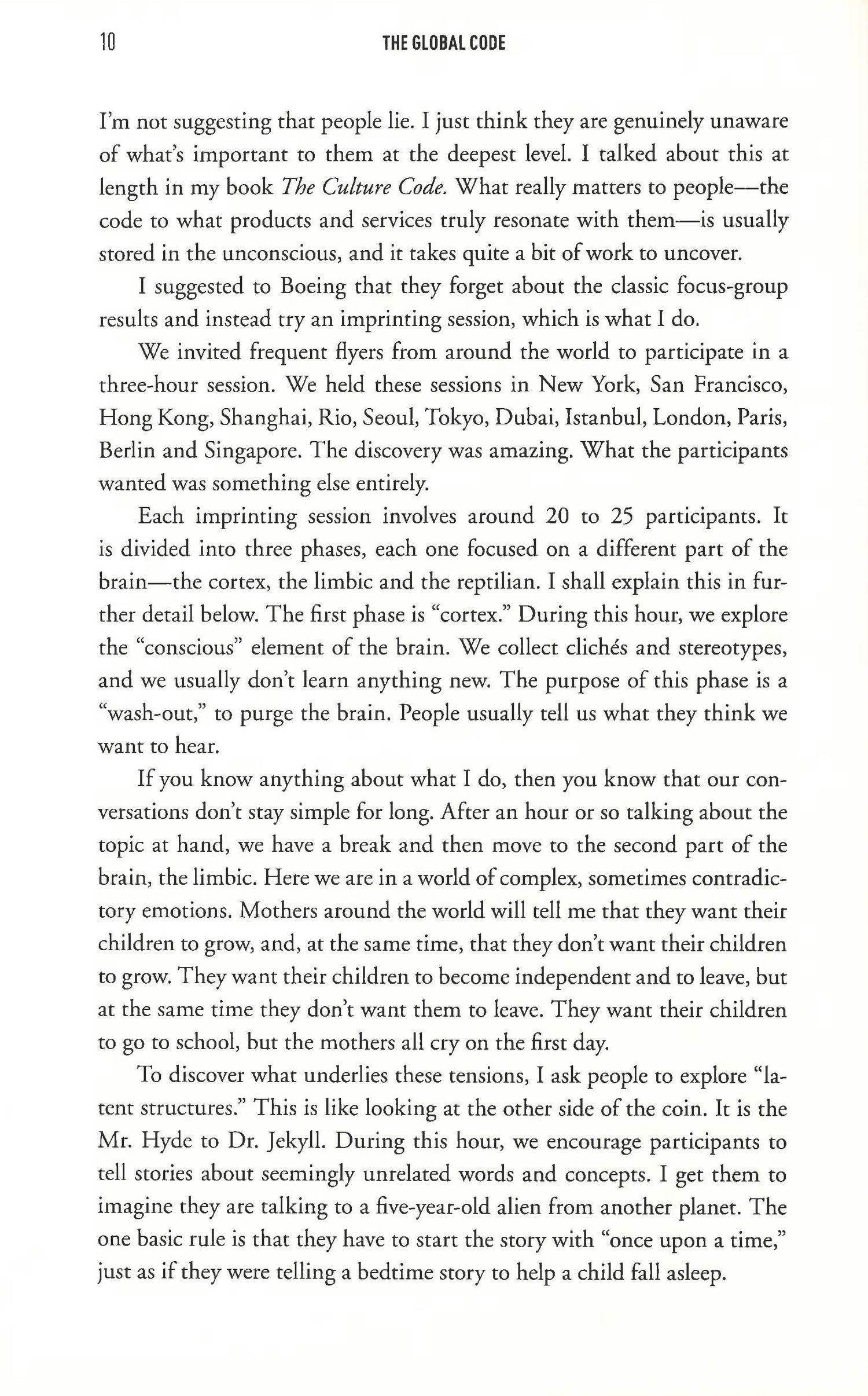 For decades, Clotaire Rapaille's work focused on how people's relationships with the most important concepts in their lives love, health, and money, for instance are guided by subconscious cultural messages. But recently, he has uncovered a new phenomenon: a "global unconscious," or core values and feelings that are consistent worldwide the result of our constant interconnectedness. He has also identified a new group who are paving the way for the future of decision-making: the Global Tribe. These individuals are fluent in the language of culture, untied to any notion of nationalism or ideology. They are defining the key values driving our new world economy, with profound implications for how companies market their products and services. Rapaille takes us on a journey through China, Brazil, India, England and everywhere in between to discover the new standards for luxury, pleasure, technology and education. How can elite brands compete in a world of knockoffs? How can universities maintain their prestige when a cheap master's degree or doctorate is only a click away? We must speak the language of the Global Tribe in order to succeed. Building on seven years of research, Rapaille analyzes how this new mindset has taken hold in various regions, and how marketers and service providers can tailor their offerings and marketing accordingly. The Global Code is an invaluable glimpse at how our new multi-sphere world is affecting us all.