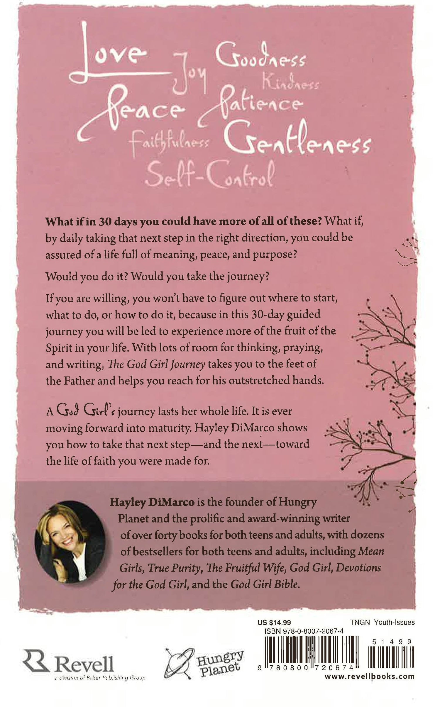 Hayley DiMarco's God Girl books and Bibles have been a huge hit with teen girls. Now everyone's favorite big sister and spiritual mentor takes girls on a 30-day journey into a deeper relationship with God. Beginning with a spiritual cleanse and then following with an in-depth study of the fruit of the Spirit, teen girls will learn what it means to love, be joyful, live out peace, and much more. Steeped in Scripture and with thought-provoking questions for girls to answer about their spiritual lives, The God Girl Journey is perfect for the girl who is on the path to becoming a God Girl and wants to take those next critical steps to maturity.