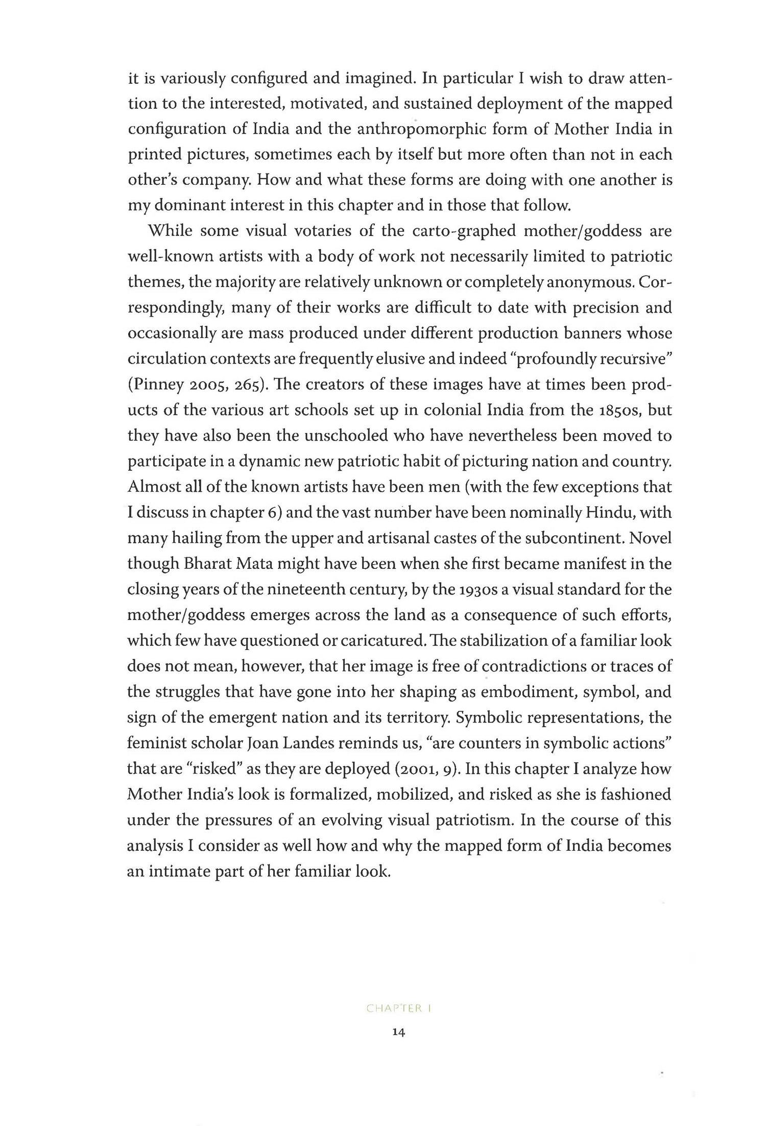 Making the case for a new kind of visual history, The Goddess and the Nation charts the pictorial life and career of Bharat Mata, "Mother India," the Indian nation imagined as mother/goddess, embodiment of national territory, and unifying symbol for the country's diverse communities. Soon after Mother India's emergence in the late nineteenth century, artists, both famous and amateur, began to picture her in various media, incorporating the map of India into her visual persona. The images they produced enabled patriotic men and women in a heterogeneous population to collectively visualize India, affectively identify with it, and even become willing to surrender their lives for it. Filled with illustrations, including 100 in color, The Goddess and the Nation draws on visual studies, gender studies, and the history of cartography to offer a rigorous analysis of Mother India's appearance in painting, print, poster art, and pictures from the late nineteenth century to the present.By exploring the mutual entanglement of the scientifically mapped image of India and a (Hindu) mother/goddess, Sumathi Ramaswamy reveals Mother India as a figure who relies on the British colonial mapped image of her dominion to distinguish her from the other goddesses of India, and to guarantee her novel status as embodiment, sign, and symbol of national territory. Providing an exemplary critique of ideologies of gender and the science of cartography, Ramaswamy demonstrates that images do not merely reflect history; they actively make it. In The Goddess and the Nation, she teaches us about pictorial ways of learning the form of the nation, of how to live with it-and ultimately to die for it.