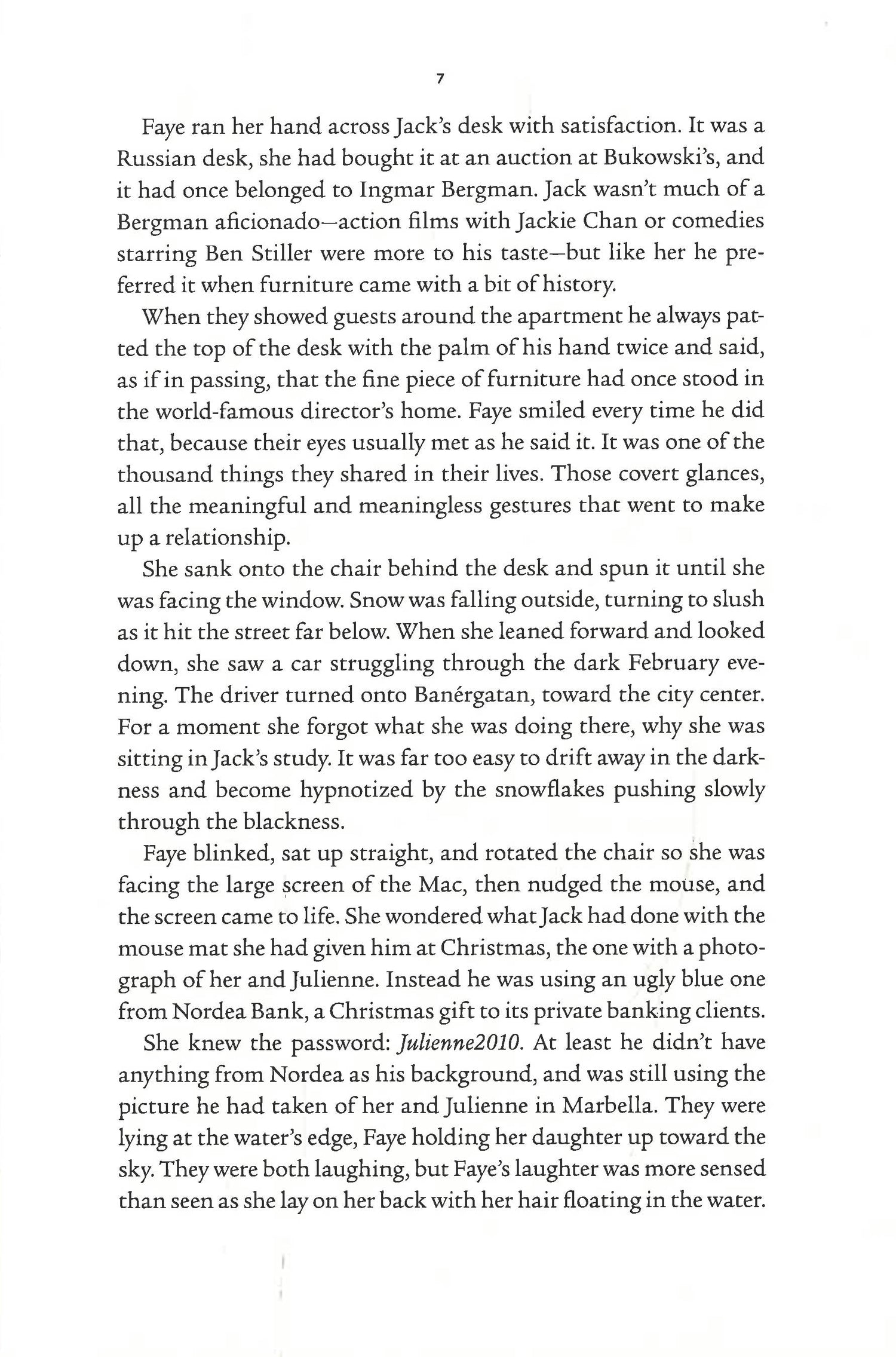 Faye has loved Jack since they were students at business school. Jack, the perpetual golden boy, grew up wealthy, unlike Faye, who has worked hard to bury a dark past. When Jack needed help launching a new company, Faye left school to support him, waitressing by day and working as his strategist by night. When the business took off, Faye stayed home and cared for their daughter.