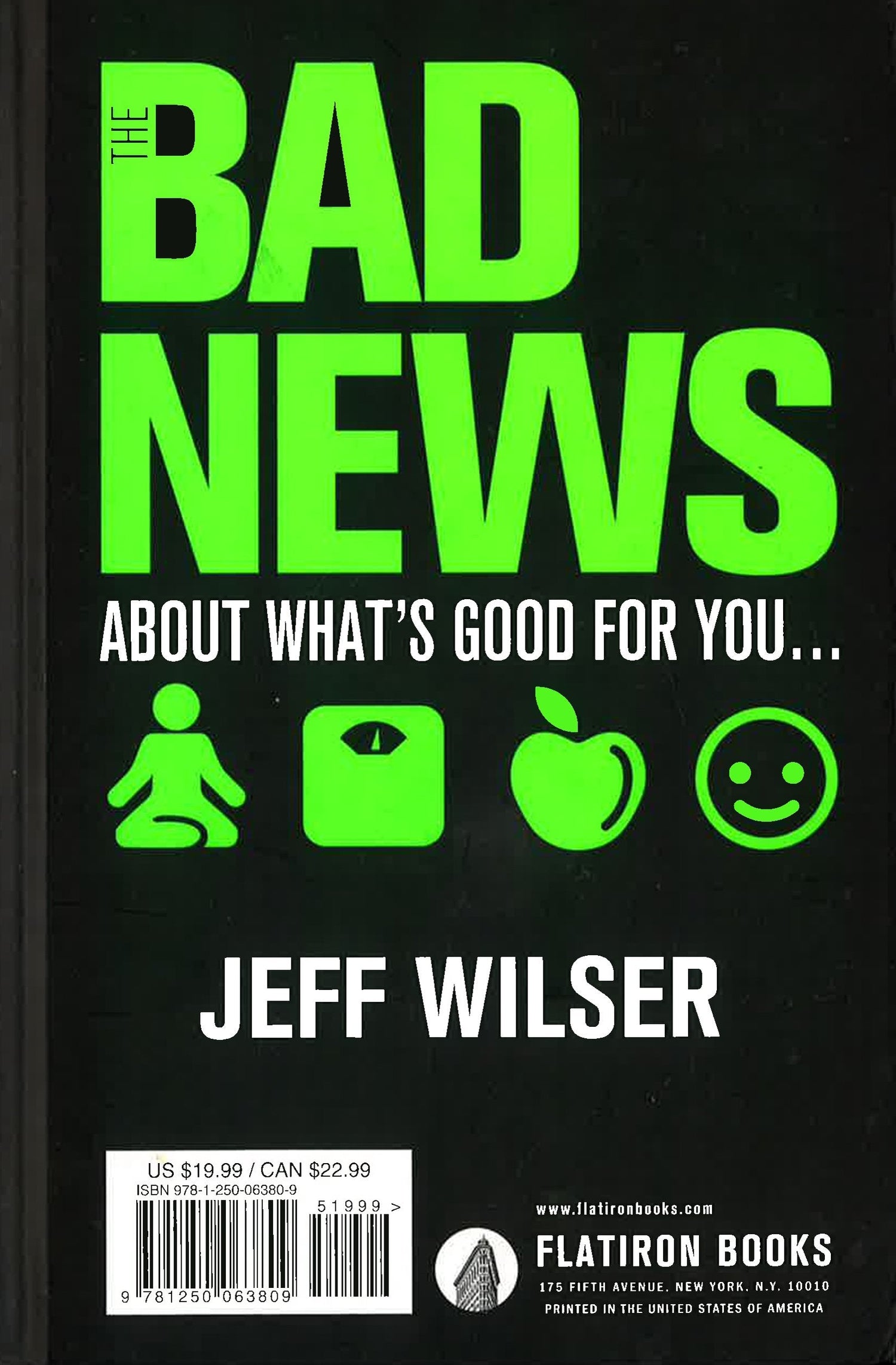 Eat more steak, drink more whiskey, take more naps, lay off all the kale, and throw out your multivitamins and standing desk. In The Good News About What's Bad For You...The Bad News About What's Good for You author Jeff Wilser shares all the research that allows you to celebrate all your vices and stop feeling bad about not brushing your teeth after eating that extra slice of cake.This book has two sides to it: one sharing all the good news, then the flip side contains all the bad news, making this the perfect gift that people will want to share and commiserate over with friends.Told with wit, charm, and a large dose of humor, the author sprints through a broad range of topics - from coffee to green tea, tequila to Vitamin Water, to apologizing and swearing. Wilser sifts through each study to reveal everything from the merits of procrastination to the downsides of yoga.In an age where so many people bend over backwards in pursuit of the most healthy and "pure" lifestyle, The Good News/The Bad News reminds readers to stop denying yourself pleasure and brings back to the tried-and-true golden rule of "everything in moderation."