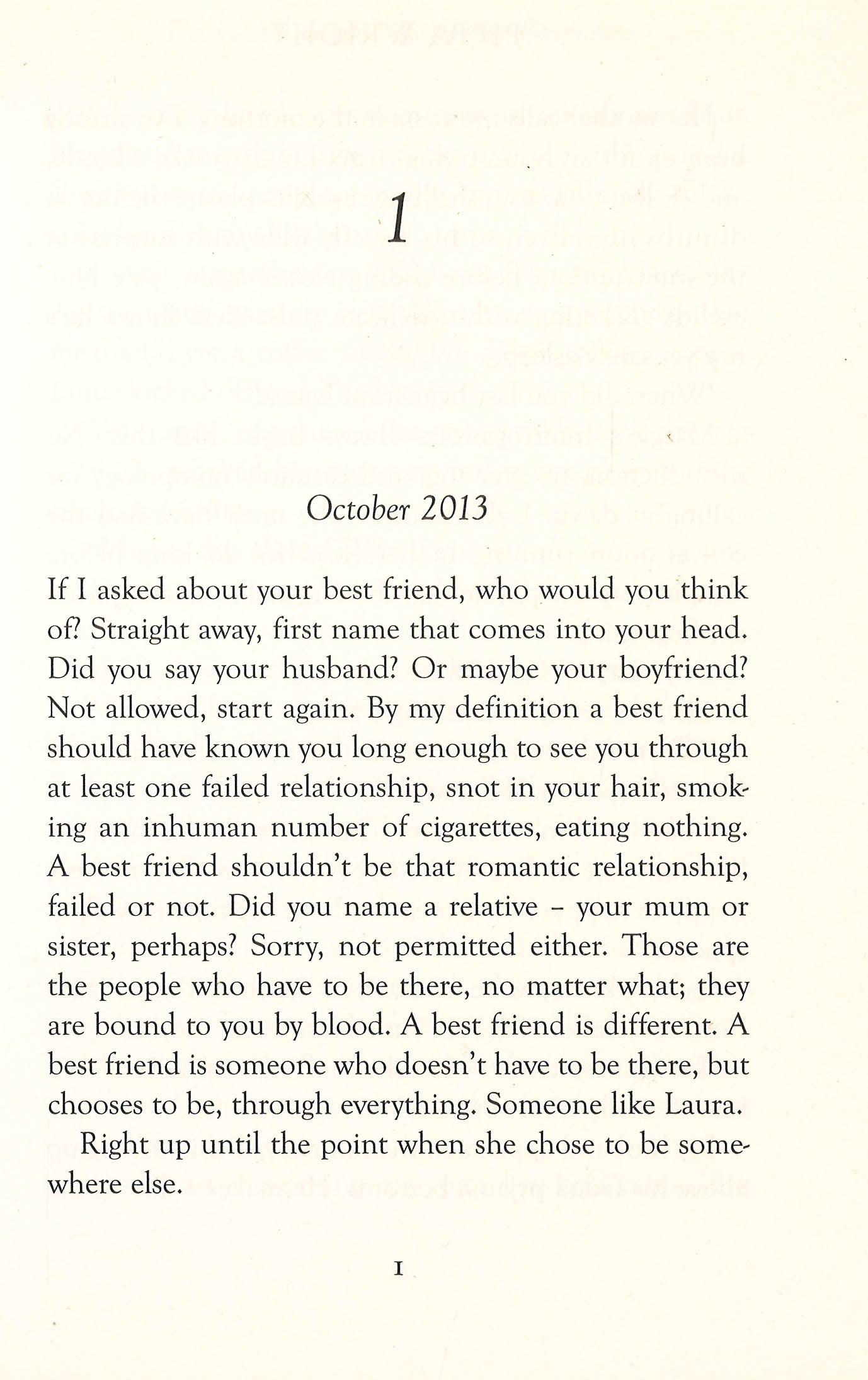 Friendship is like a shark: it has to keep moving forwards to survive. Esther and Laura have been best friends since they were seven, when Esther was chubby and Laura was already perfect. So much has changed since then - school, boyfriends, drink, experimental hair-dye, university, jobs, London, babies - and their friendship has changed just as much, but they are still close, still inextricably linked to one another. So when Esther is told that Laura has gone missing, she leaves everything behind - including her husband and small child - to fly to San Francisco and trace her friend's last movements. All she has is an email from Laura: 'I'm channelling Drew Barrymore, as ever. The Gospel, right?' In trying to understand why Laura has disappeared, and what on earth Drew Barrymore has to do with it, Esther needs to look back. Back at the secrets woven into their friendship and the truths she's avoided facing for so long.