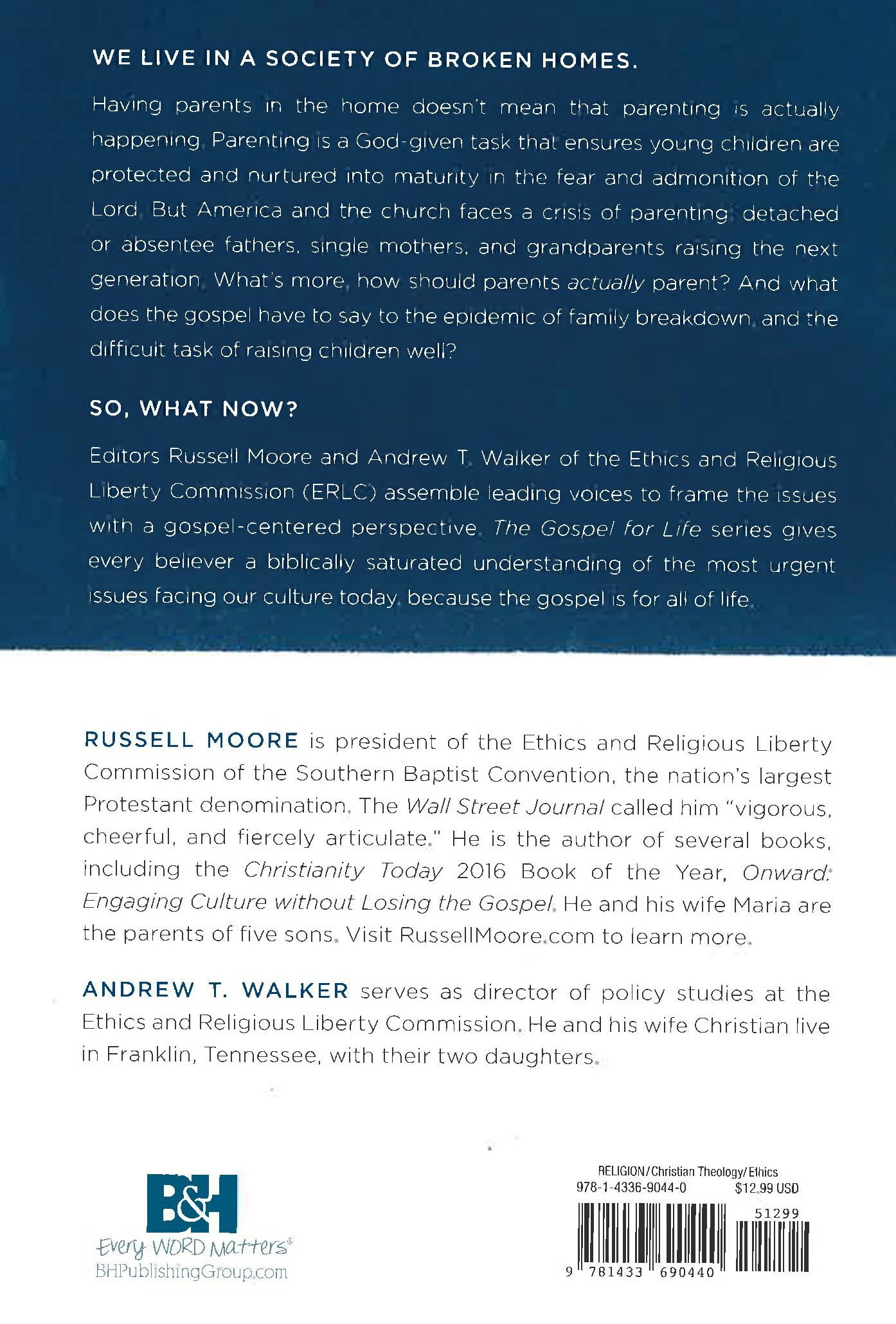 We live in a society of broken homes. Having parents in the home doesn't mean that parenting is actually happening. Parenting is a God-given task that ensures young children are protected and nurtured into maturity in the fear and admonition of the Lord. But America and the church faces a crisis of parenting: detached or absentee fathers, single mothers, and grandparents raising the next generation. What's more, how should parents actually parent? And what does the gospel have to say to the epidemic of family breakdown, and the difficult task of raising children well? So, what now? Editors Russell Moore and Andrew T. Walker of the Ethics and Religious Liberty Commission (ERLC) assemble leading voices to frame the issue with a gospel-centered perspective. The Gospel for Life series gives every believer a biblically-saturated understanding of the most urgent issues facing our culture today, because the gospel is for all of life.