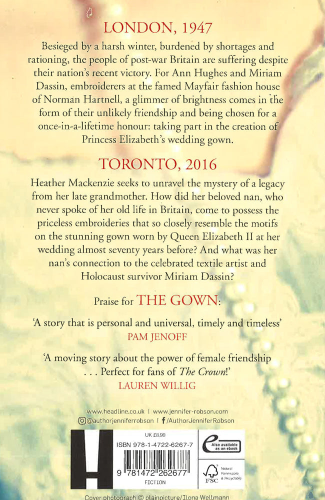 Perfect for anyone who's captivated by The Crown, The Gown 'will dazzle and delight' (Independent)!The Gown is an enthralling historical novel about one of the most famous wedding dresses of the twentieth century - Queen Elizabeth's wedding gown - and the fascinating women who made it. London, 1947: Besieged by a harsh winter, burdened by shortages and rationing, the people of post-war Britain are suffering despite their nation's recent victory. For Ann Hughes and Miriam Dassin, embroiderers at the famed Mayfair fashion house of Norman Hartnell, a glimmer of brightness comes in the form of their unlikely friendship and being chosen for a once-in-a-lifetime honour: taking part in the creation of Princess Elizabeth's wedding gown. Toronto, 2016: Heather Mackenzie seeks to unravel the mystery of a legacy from her late grandmother. How did her beloved nan, who never spoke of her old life in Britain, come to possess the priceless embroideries that so closely resemble the motifs on the stunning gown worn by Queen Elizabeth II at her wedding almost seventy years before? And what was her nan's connection to the celebrated textile artist and Holocaust survivor Miriam Dassin?With The Gown, Jennifer Robson takes us inside the workrooms where one of the most famous wedding gowns in history was created to tell a story of women whose lives are woven together by the pain of survival, the bonds of friendship, and the redemptive power of love.'Robson succeeds in creating a riveting drama of female friendship, of lives fully lived despite unbearable loss, and of the steadfast effort required to bring forth beauty after surviving war' Independent'A great tale of female friendship' The People's Friend