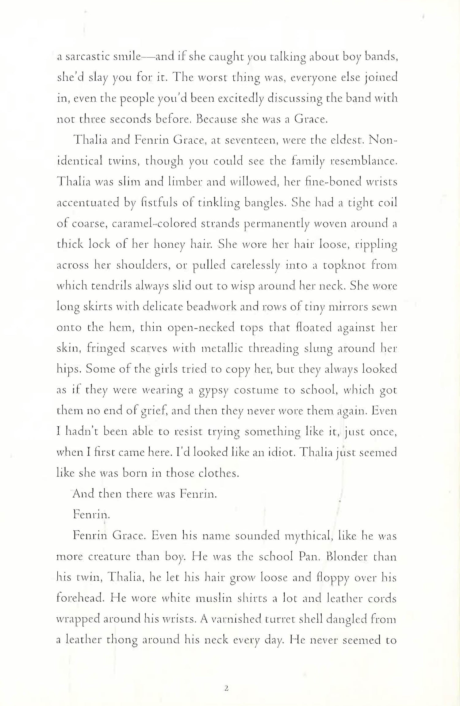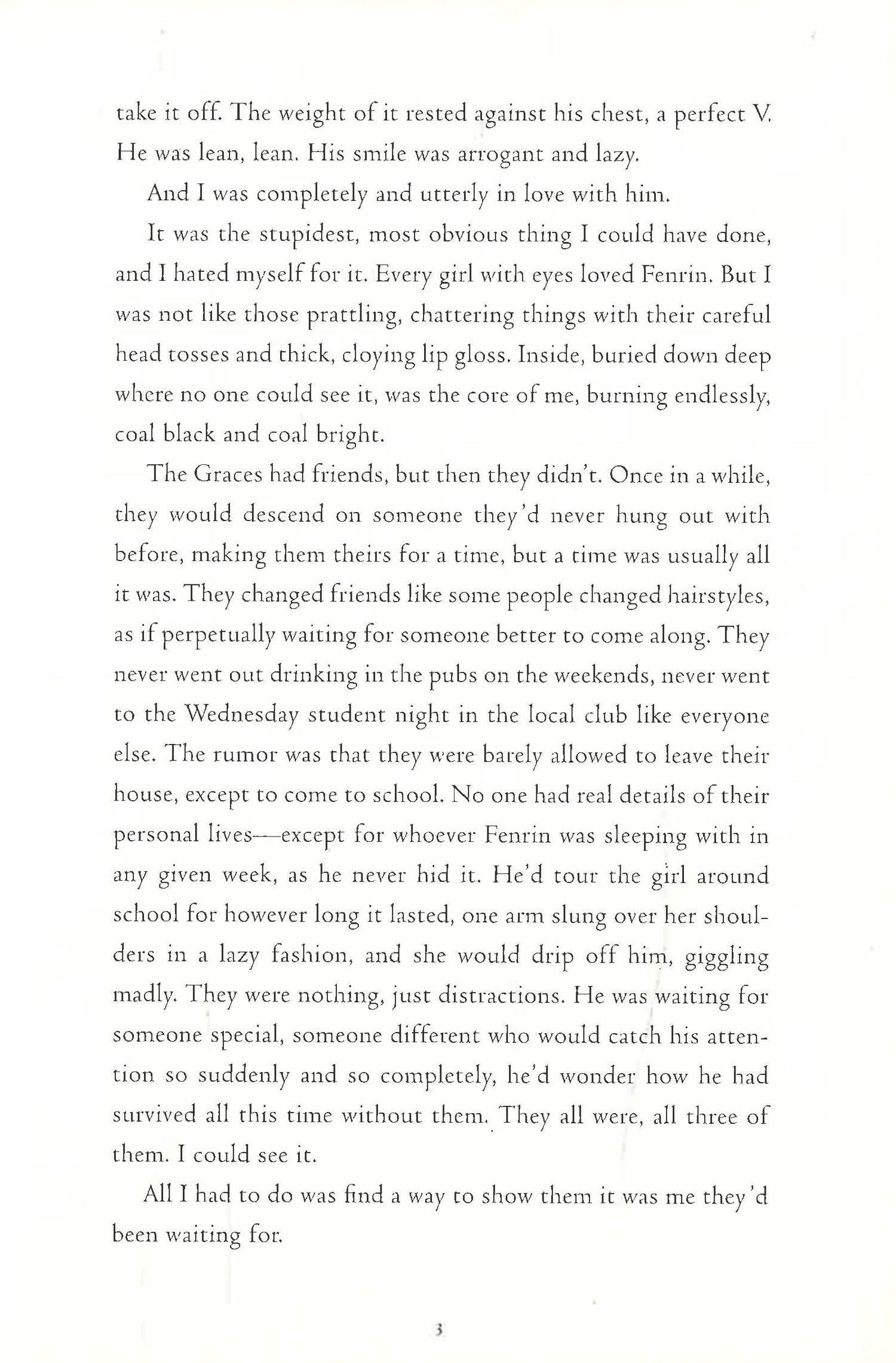 Everyone loves the Graces. Fenrin, Thalia, and Summer Grace are attractive, rich, and glamorous, and they've cast a spell over their high school--and their entire town. They're also rumored to have powerful connections all over the world. If you're not in love with one of them, you want to be one of them. This is especially true for River: the new girl at school. River's different from the rest of the horde that both revere and fear the Grace family. She's dark, aloof, and just maybe . . . magical. And she wants to be a Grace more than anything. But what the Graces don't know is that River's presence in their town is no accident. The first rule of witchcraft is that if you want something bad enough, you can get it . . . no matter who has to pay.